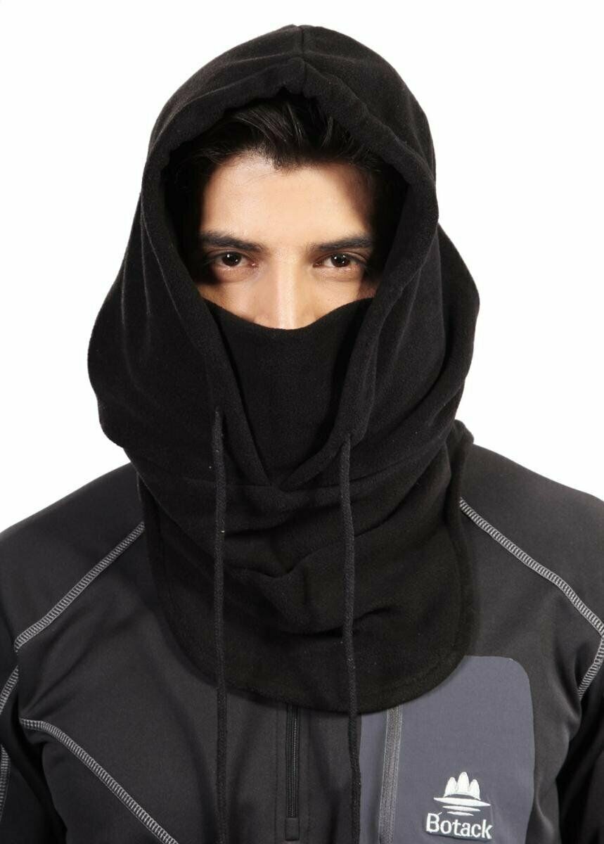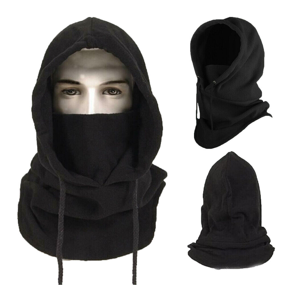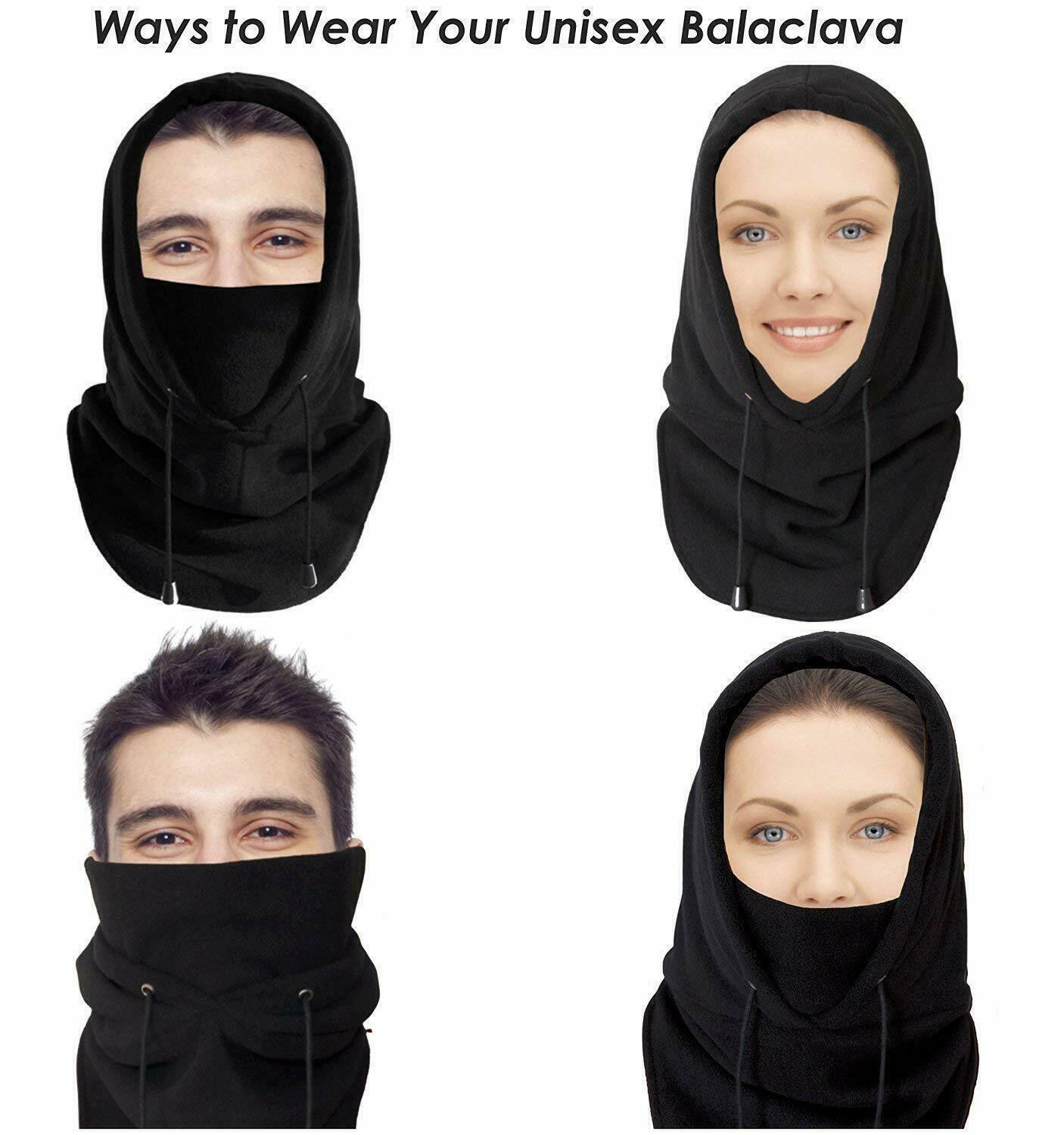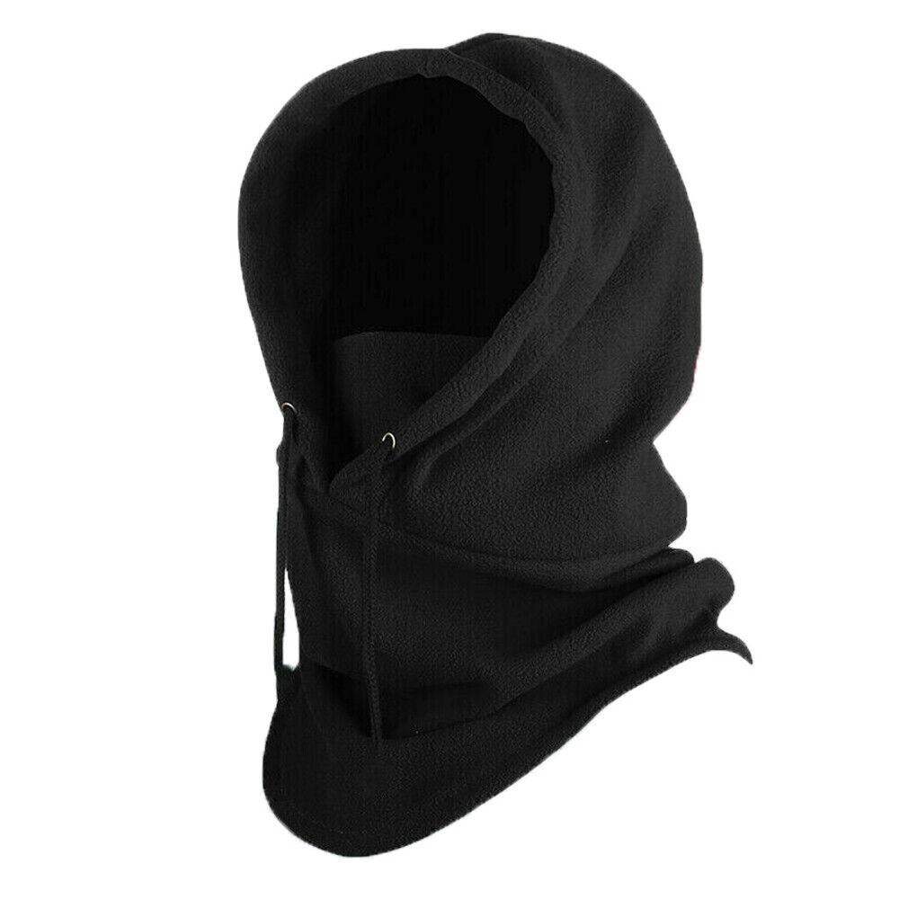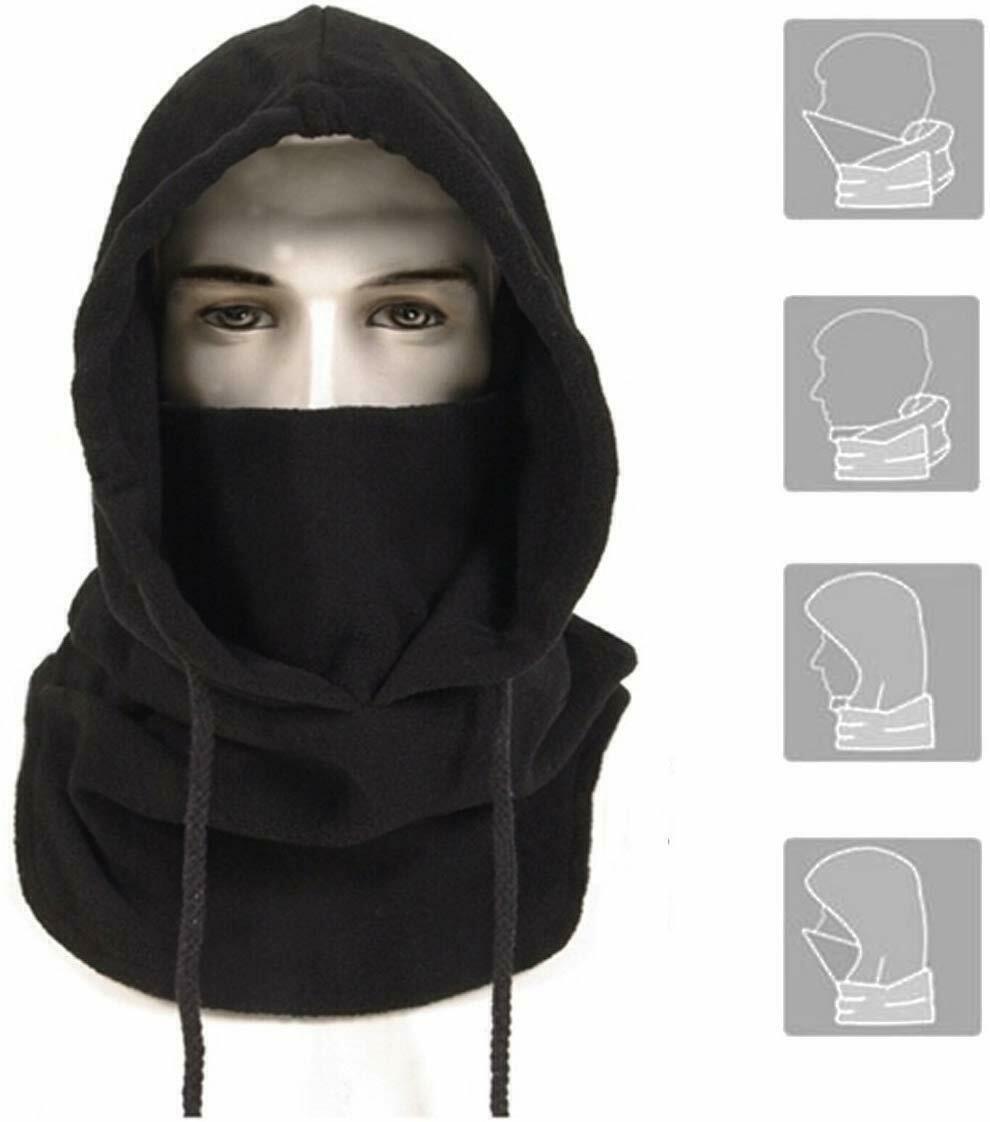 Mens Winter Thermal Fleece Balaclava Hat Motorcycle Neck Warmer Hood Face Mask--Black