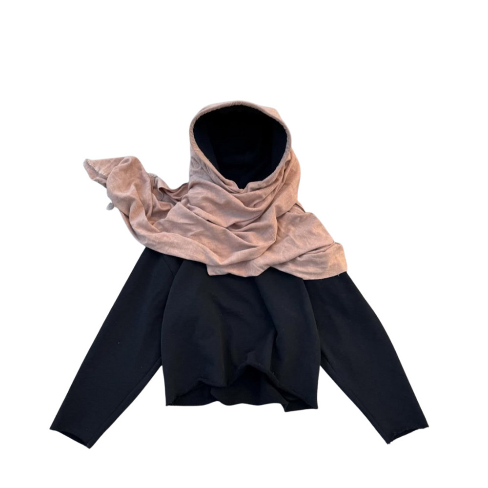 Color: J28 dark gray towel sweater, J28 black camel scarf towel sweater, J28 black towel sweater