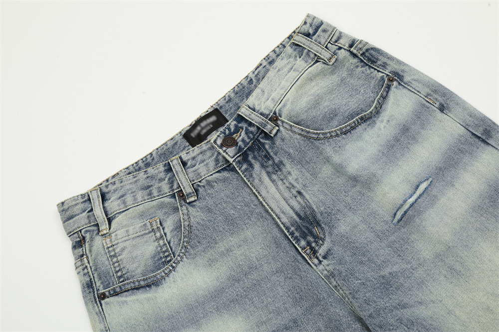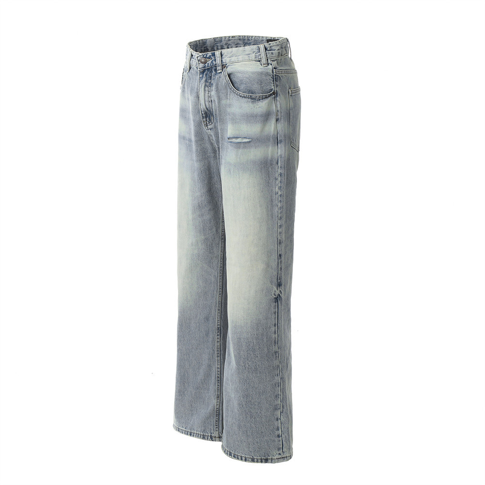 Men's Worn Washed Trousers Make Old Ripped Jeans