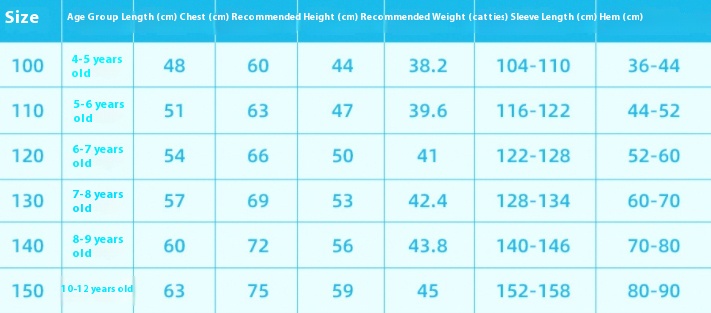 Size: 100cm,110cm,120cm,130cm,140cm,150cm