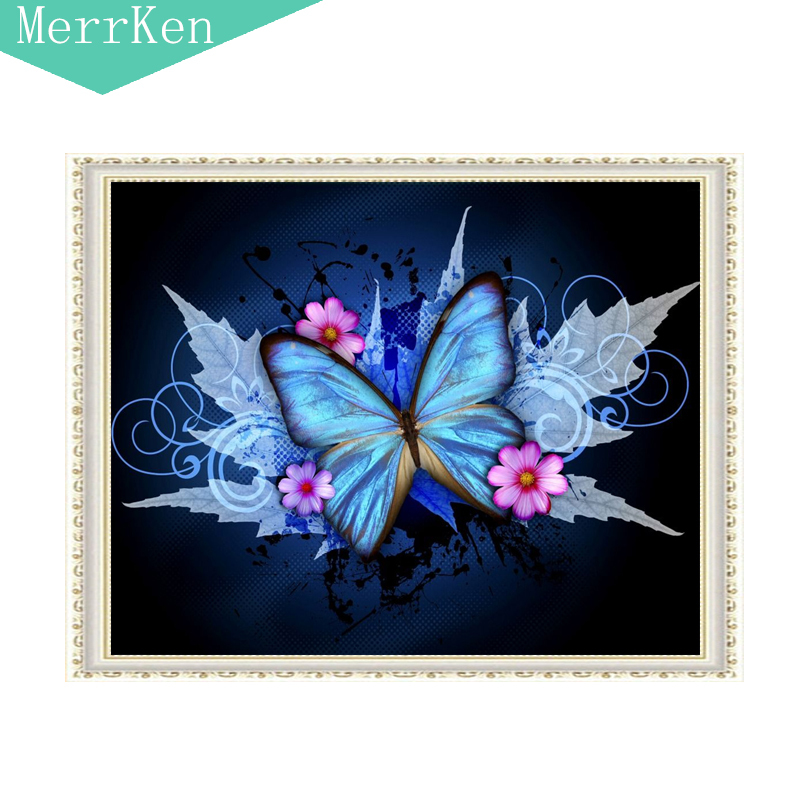 Merrken 5d Diy Diamond Painting Cross Blue Butterfly Diamond Embroidery Diamond Mosaic Home Decor 30x40cm