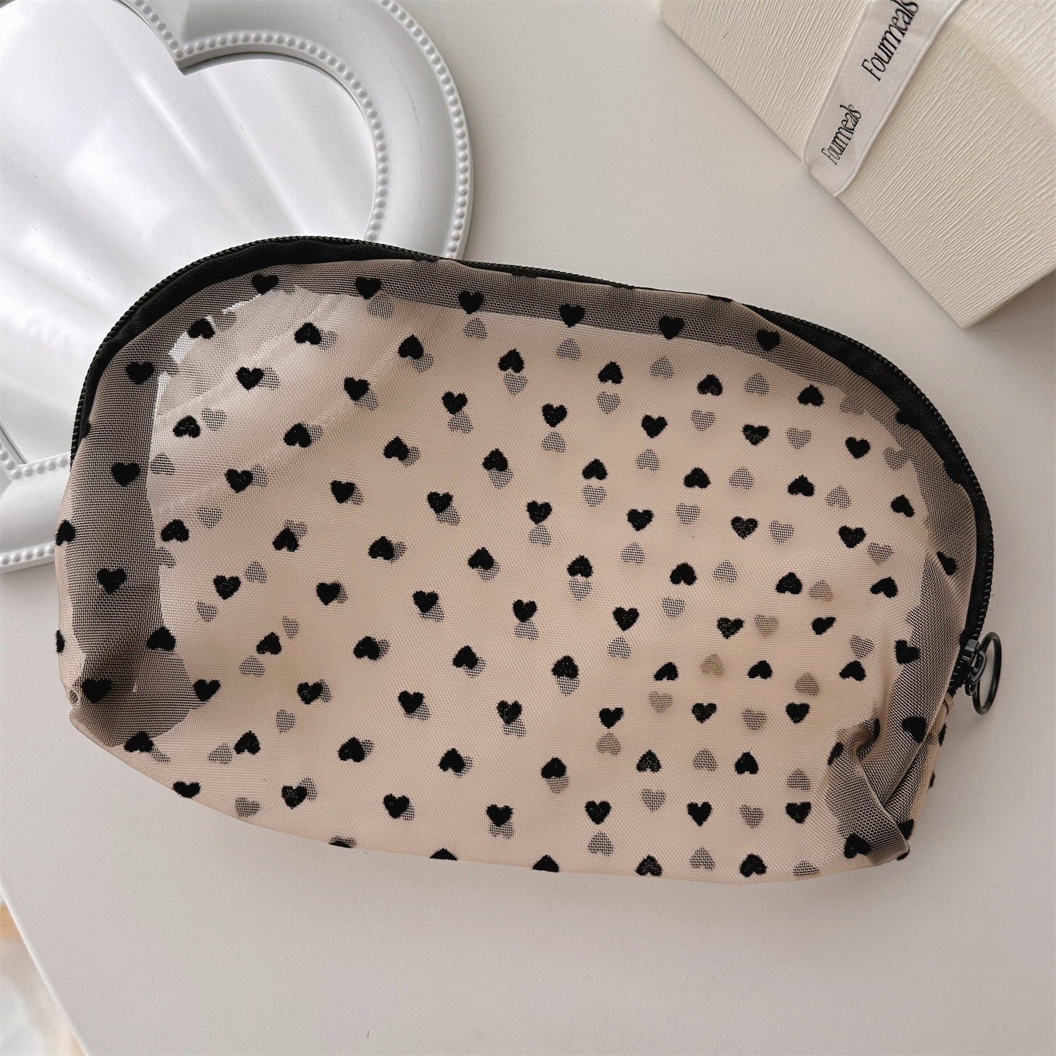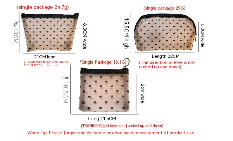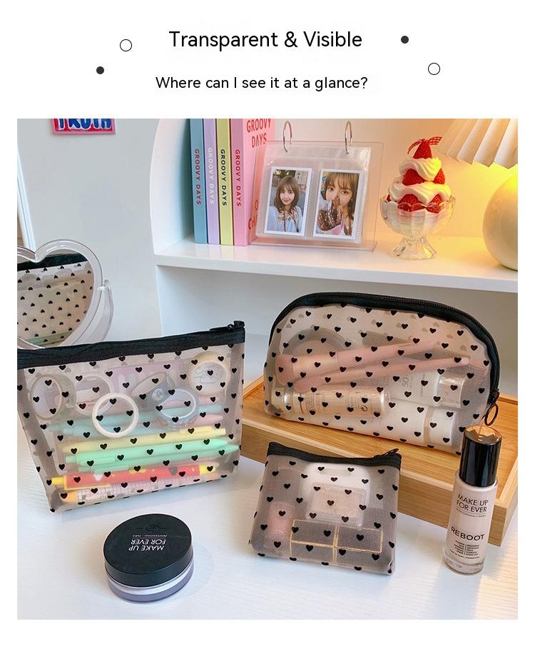 Mesh Cosmetic Love Storage Bag Portable