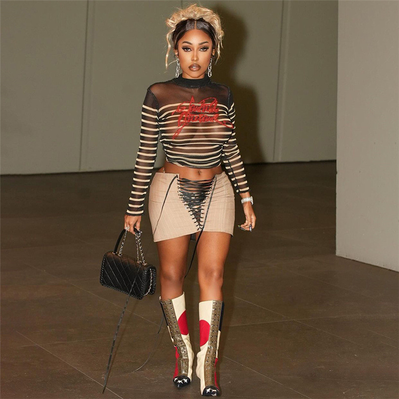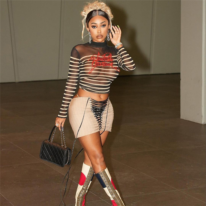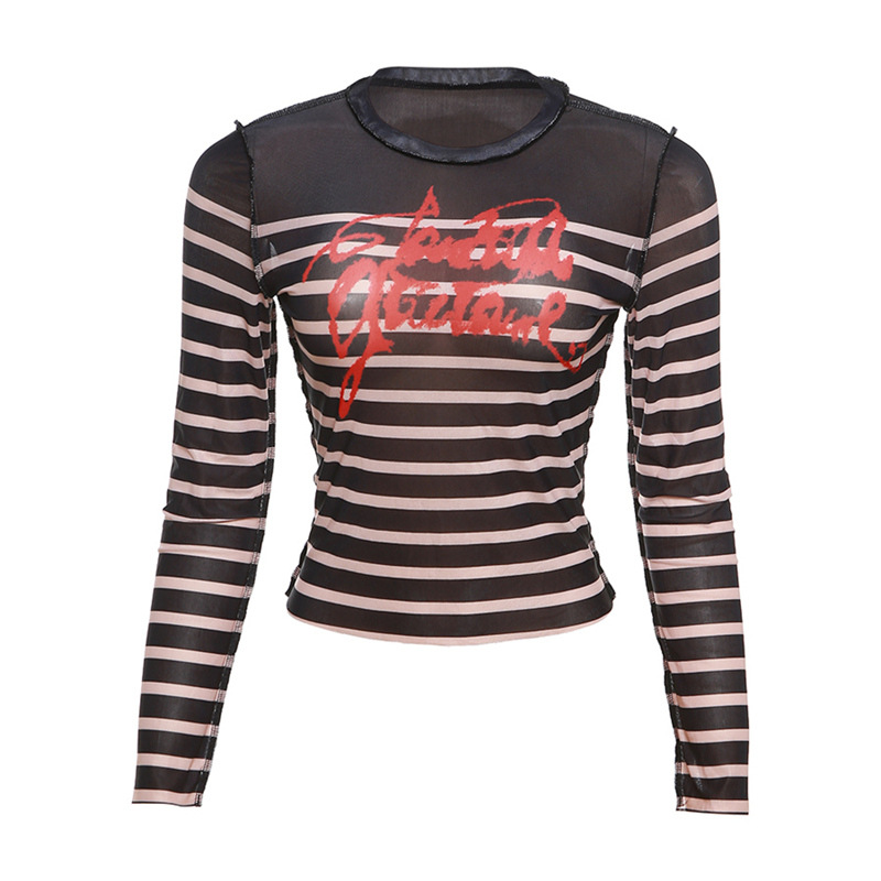Mesh Digital Printing Contrast Color Round Neck Slim-fit Street Shot Top