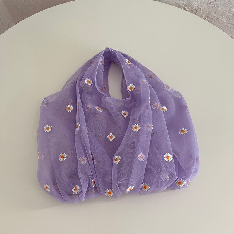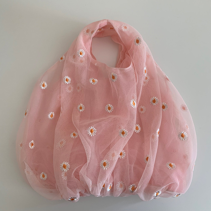 Double-layer mesh embroidered bag