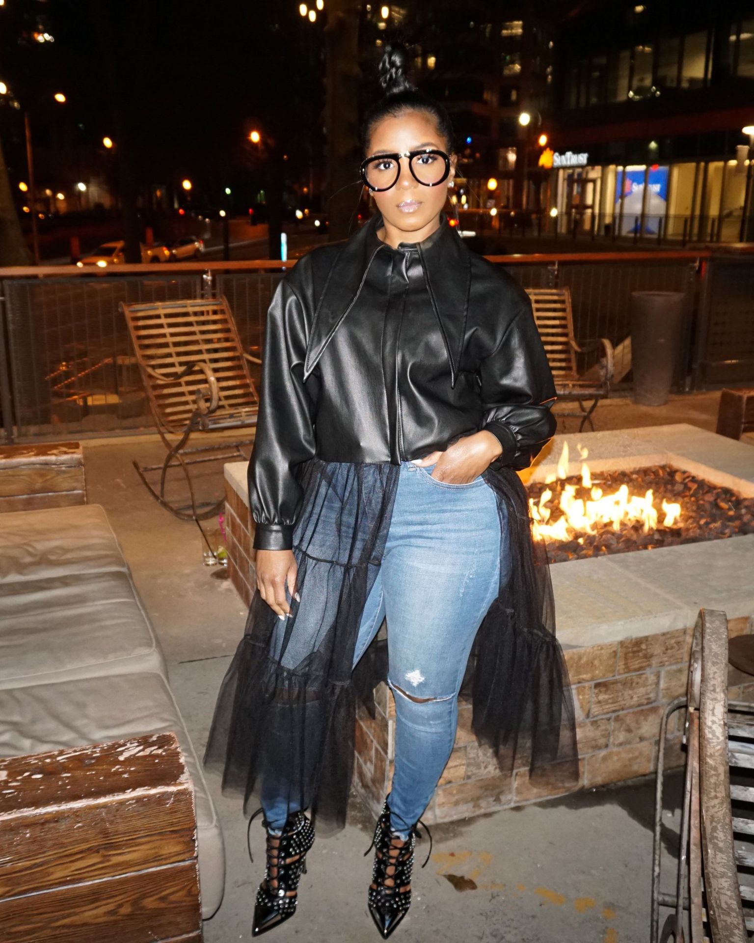 Mesh leather jacket