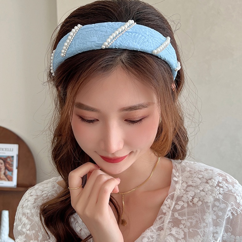 Color: blue pearl headband, white pearl headband, mesh flower headband, rose small flower headband, creamy-white, light blue, 3# Small fresh six-piece set, 4# Small fresh six-piece set, 8# Small clear three-piece set, 10# Small clear three-piece set, black hair hoop, light blue, blue lace, mesh blue, summer-little blue flowers