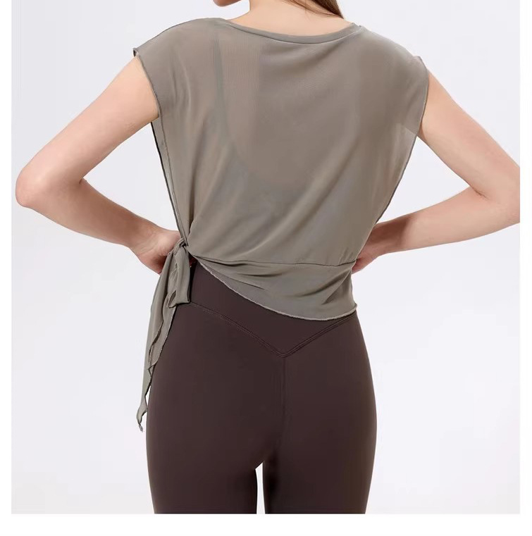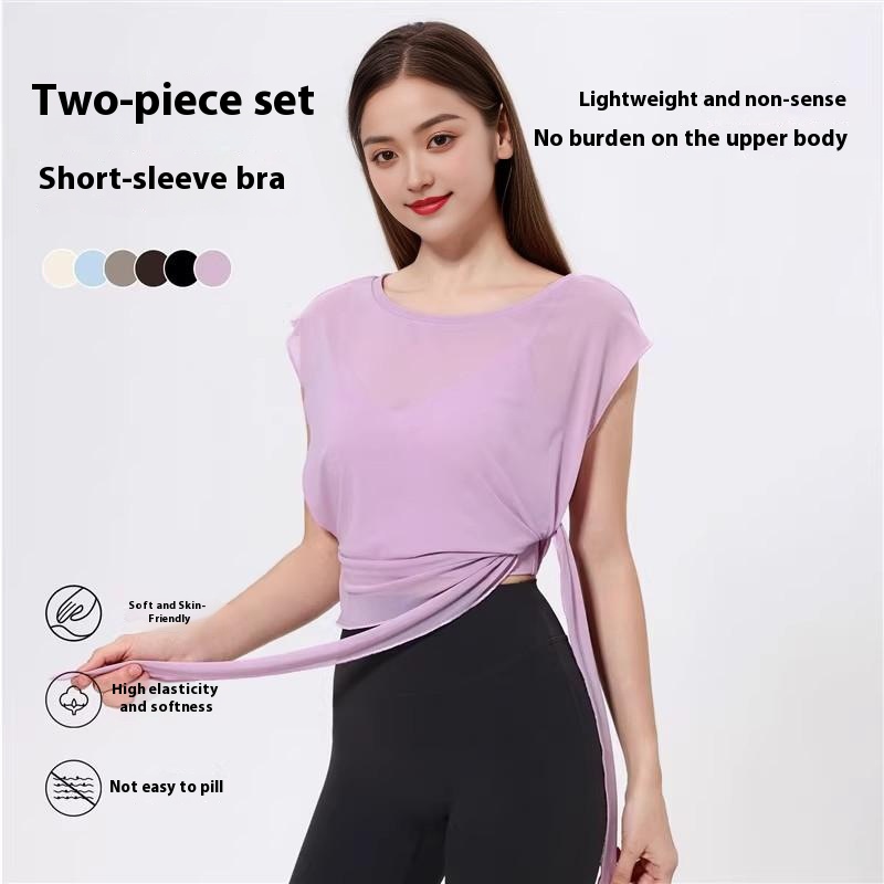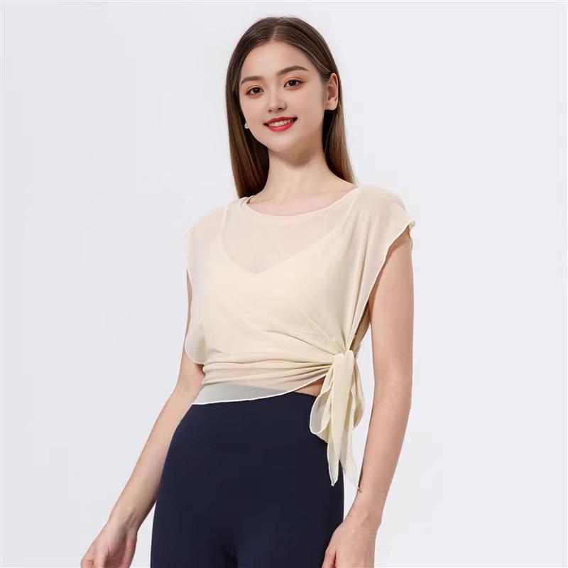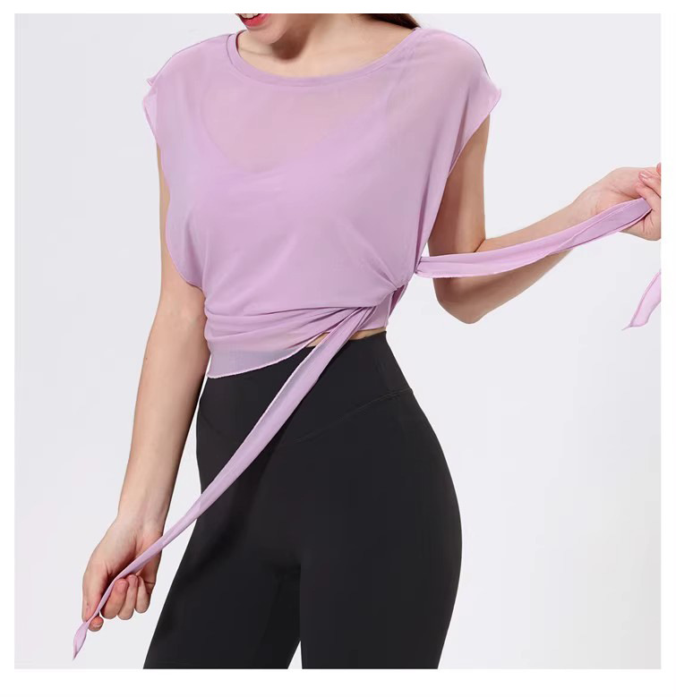 Mesh Quick-drying Fixed Chest Pad Fitness Dance Top Blouse