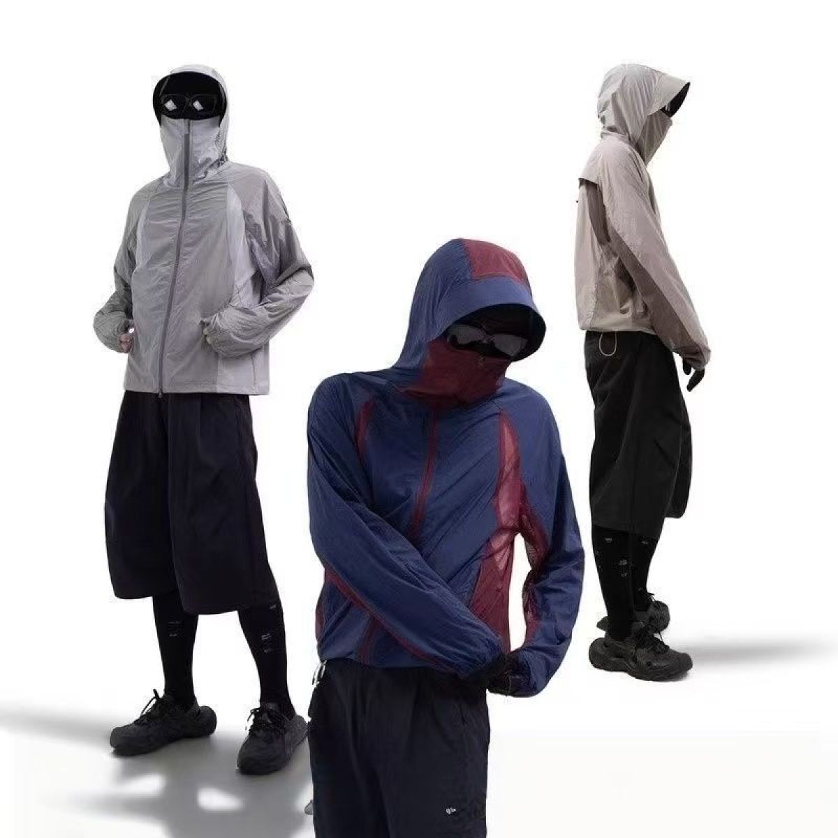 Color: desert brown, light gray, red and blue