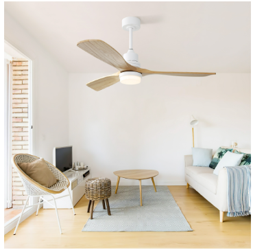 52-inch solid wood ceiling fan with low noise, decibels below 35DB, ideal for use in living rooms, bedrooms, corridors, terraces, farmhouses, etc., and can be installed on sloping concrete roofs.