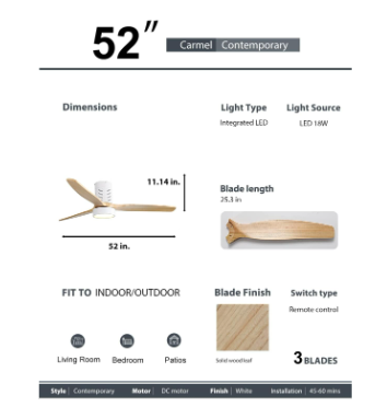 Ceiling fan adopt 18W LED light source with a lighting memory function. Compared with ordinary light sources, LED light sources are more energy-efficient and have a longer lifespan. There are 3 color temperatures to choose from (3000K/4500K/6000K).
