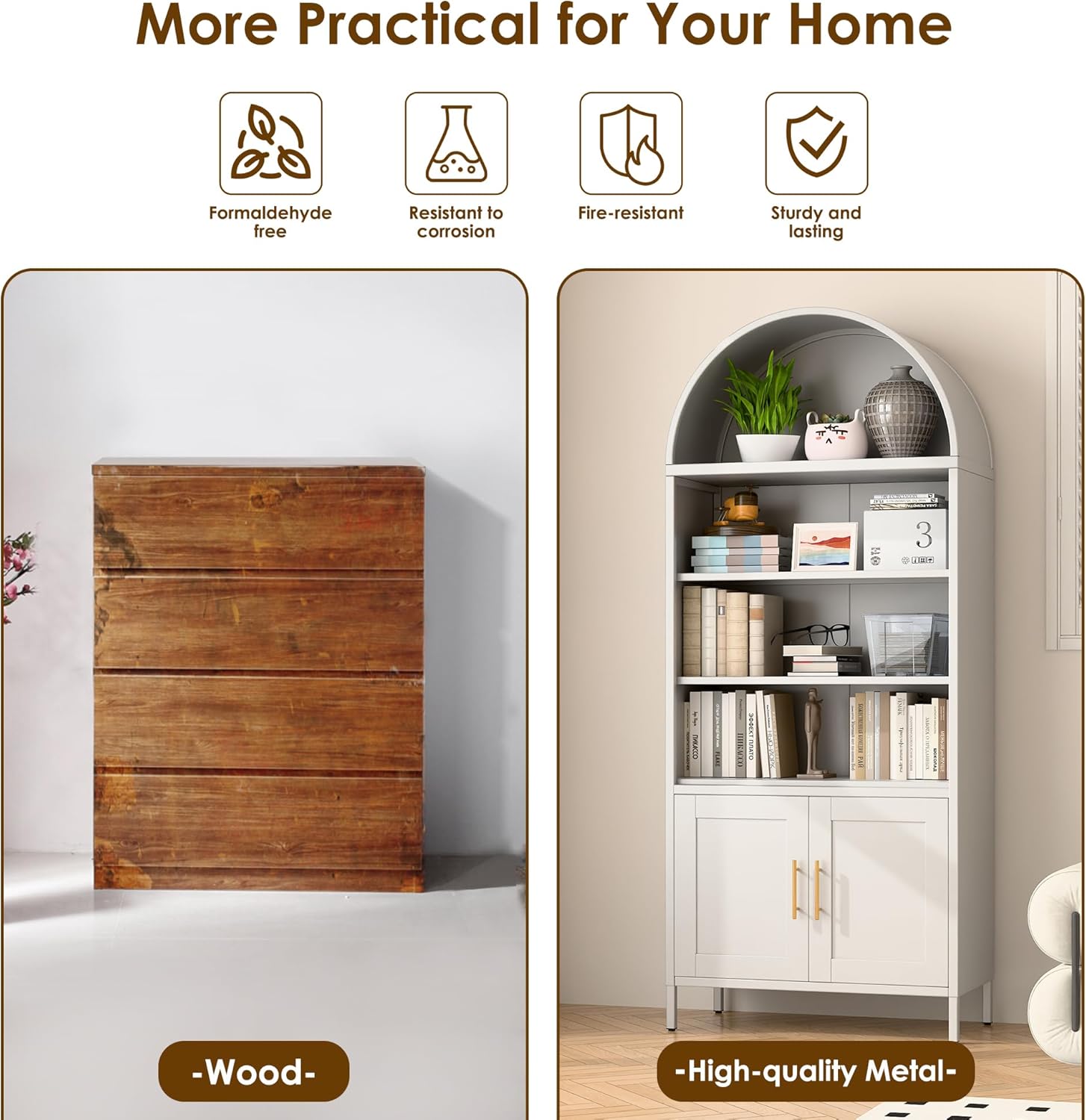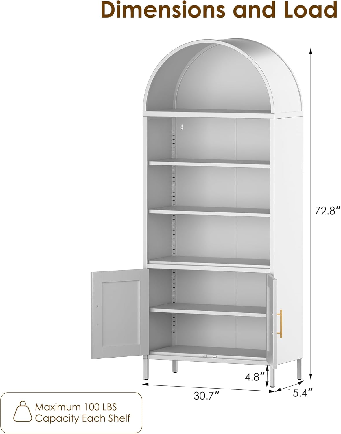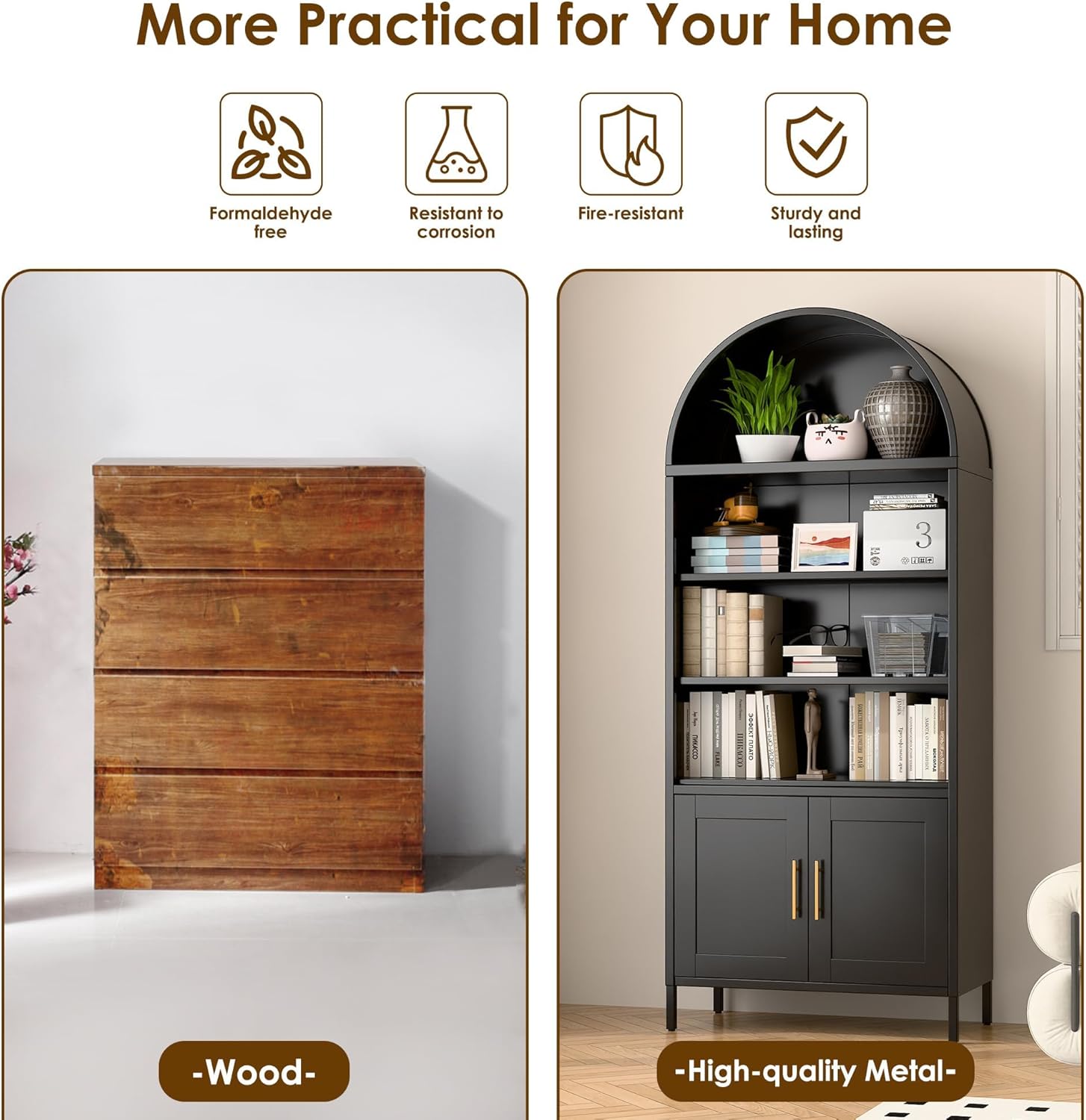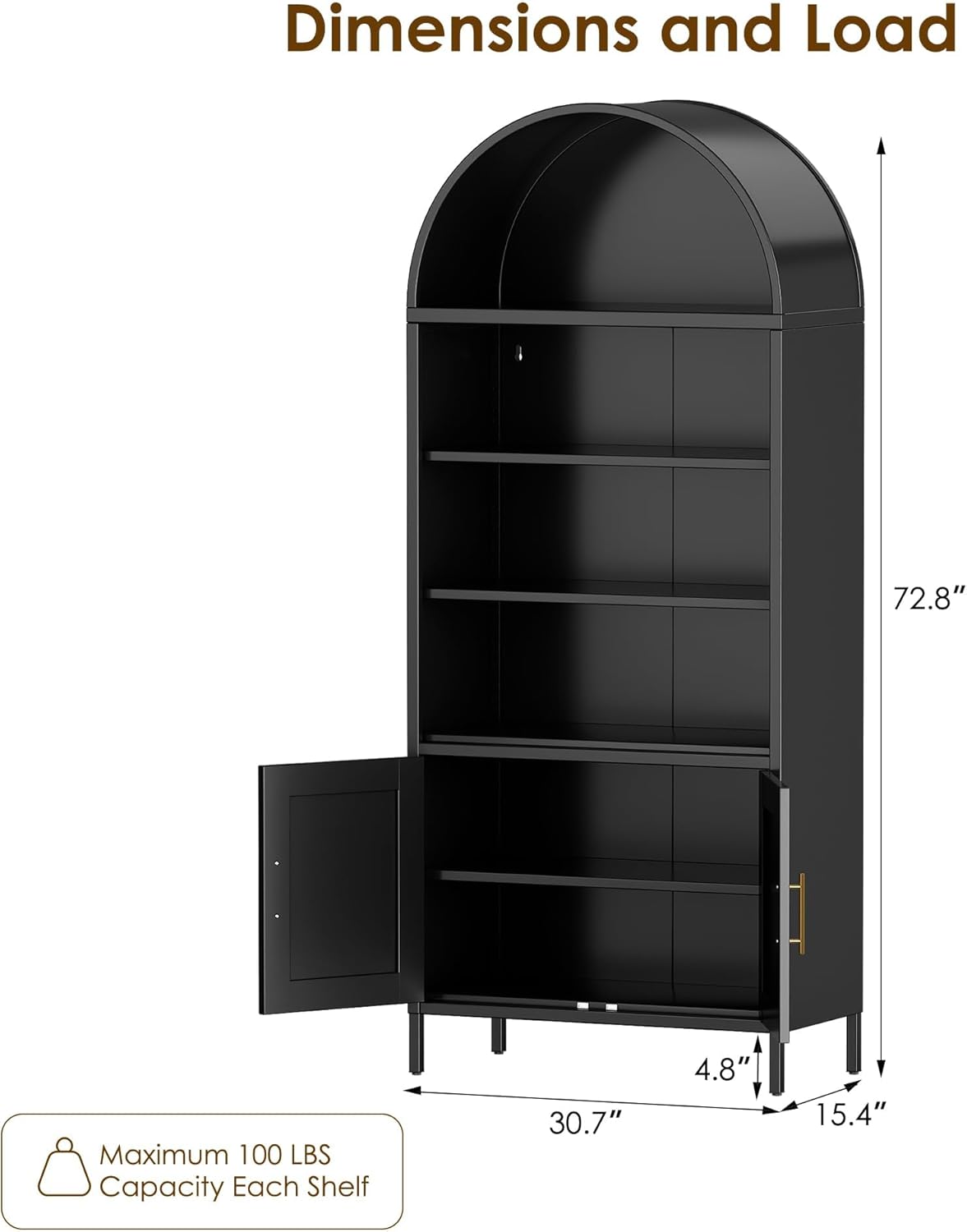 Metal Arched Household Storage Cabinet In Black And White Color