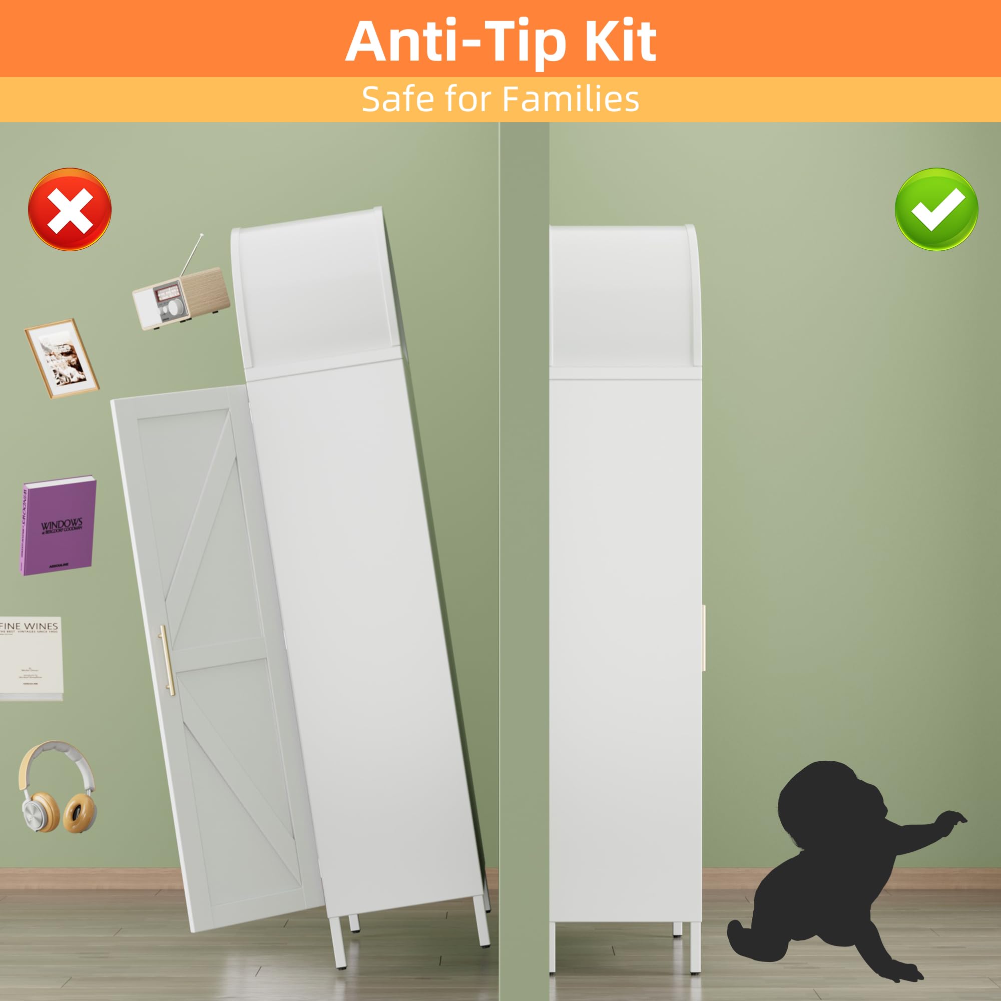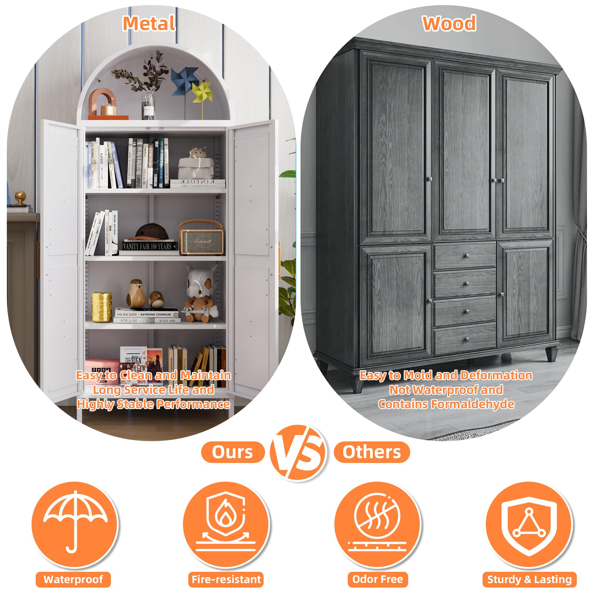 Versatile and Durable Craft Storage Cabinet - White arched kitchen pantry cabinet boasts remarkable corrosion resistance and exceptional durability, ensuring it stands the test of time. Its easy-to-clean surface makes maintenance a breeze. Perfectly suited for any area of your home, including the kitchen, living room, bathroom.