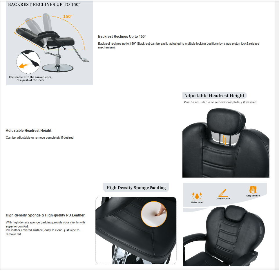 Product Name:Classic Reclining barber Chair Salon Chair for Hair Stylist with Heavy Duty Hydraulic Pump, 360° Rotation, Tattoo Chair Shampoo Beauty Salon Equipment, Max Load Weight 330 Lbs, Black