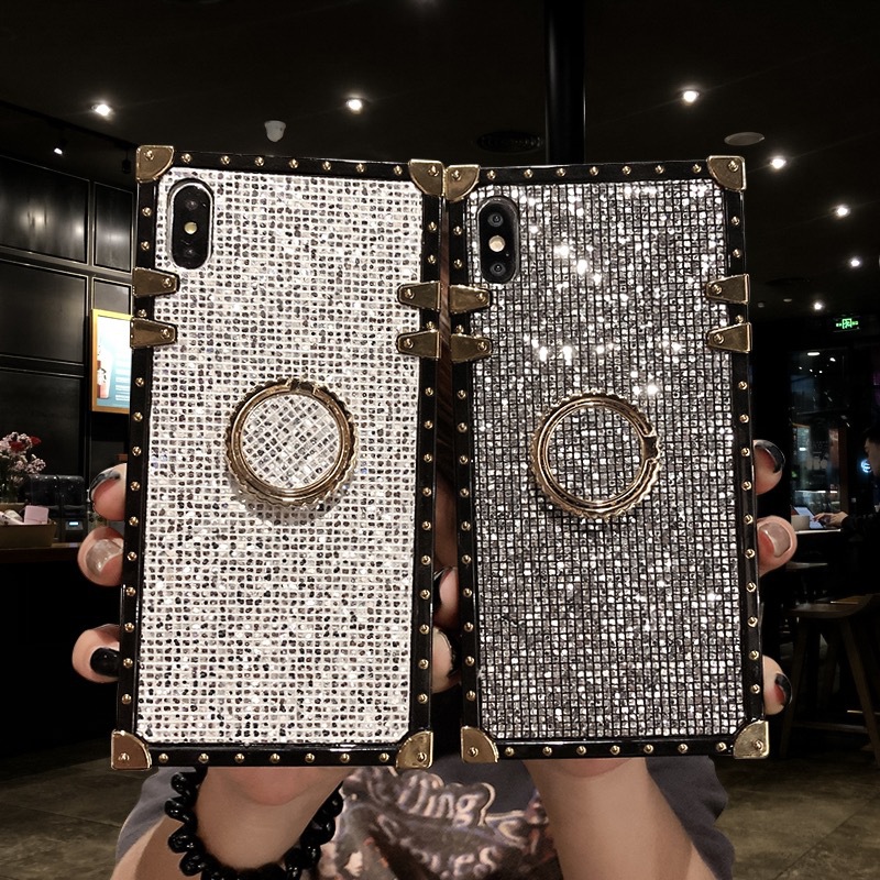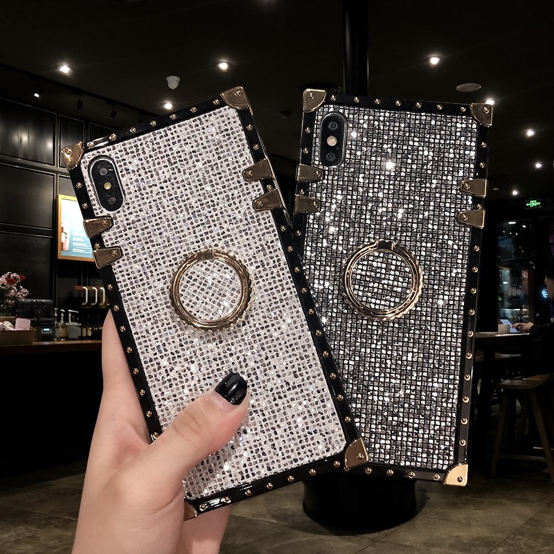 [Product Name]: Flash Diamond Stand Square Phone Case[Product model]: IPhone