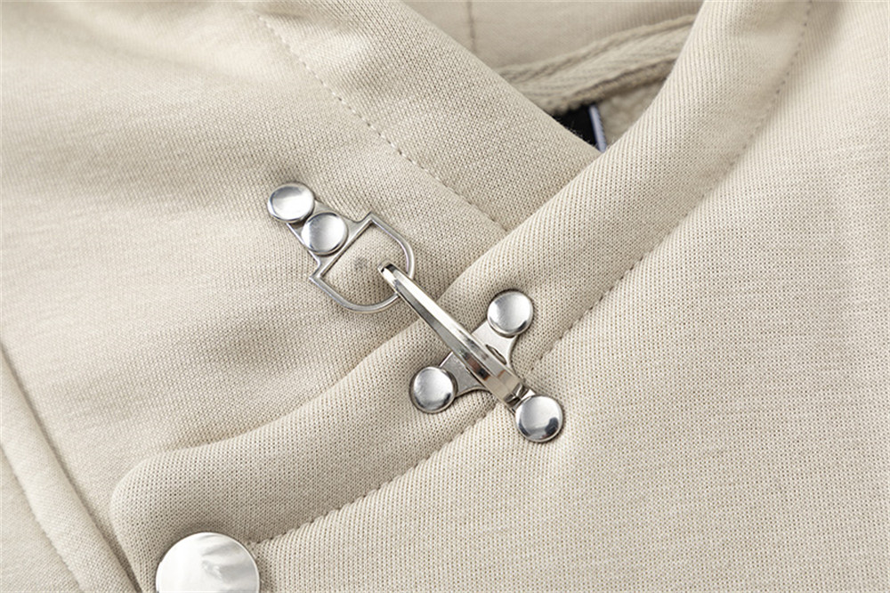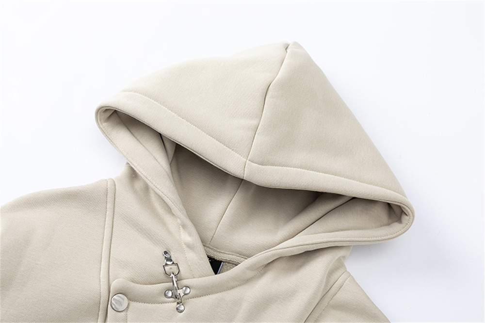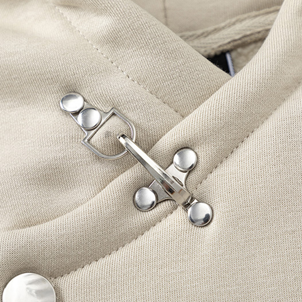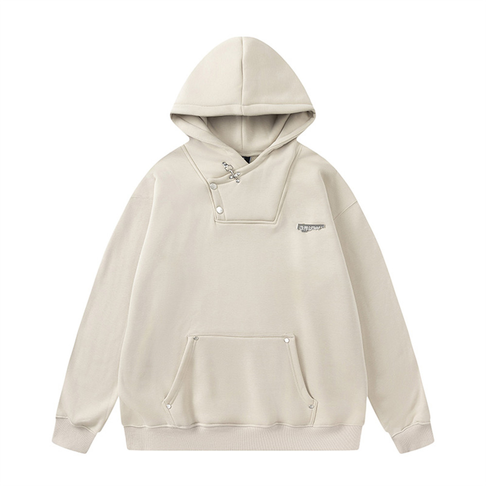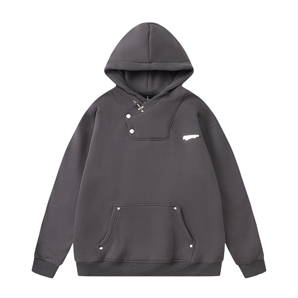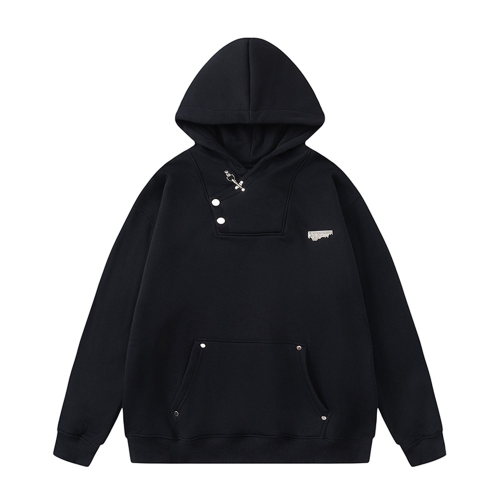 Metal Buckle Thickened Hooded Sweatshirt Men's Ins Casual Solid Color Pullover Hoodie