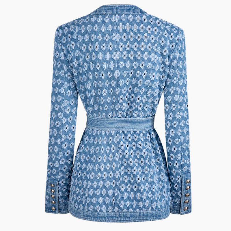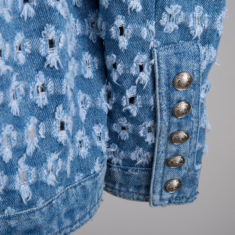 Metal button decoration heavy industry washing and grinding hole round collar denim lace up coat