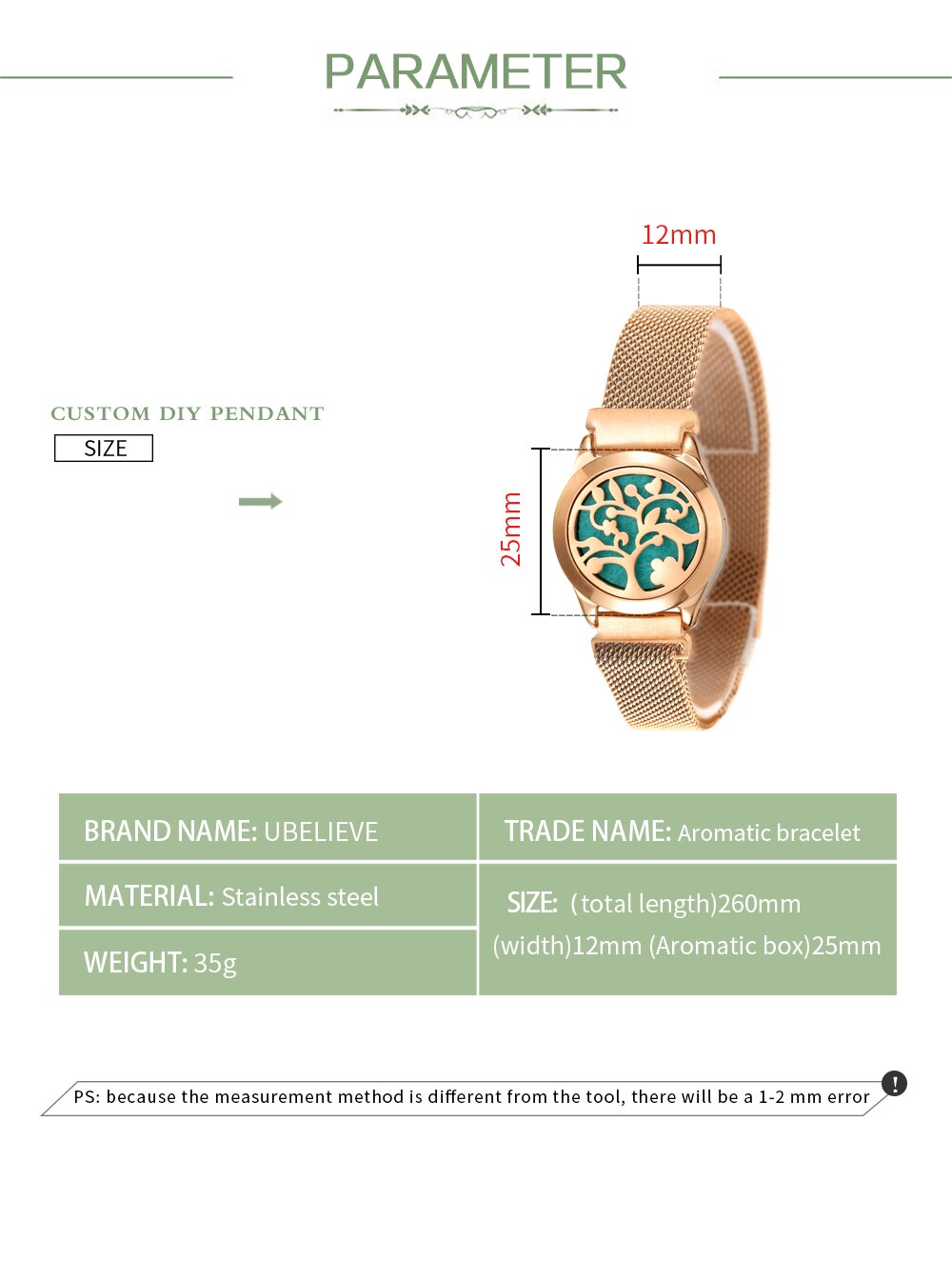 The appearance is frequent, atmospheric, and beautiful. The material is 316L stainless steel, which is wear-resistant, does not fade, corrode, and is resistant to strong acids and alkalis. It does not change color, fade, allergy, deformation, hardness, or brightness. It is a green high-end environmentally friendly jewelry that does not cause side effects and harmless to the human body. The high-end fashion and elegant hollow design can be opened to put in your favorite accessories or a piece of aromatherapy essential oil!