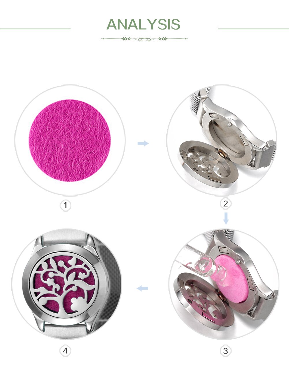How to use: You need to drop the prepared essential oil on the cotton core first, and then put the cotton core into the pendant.