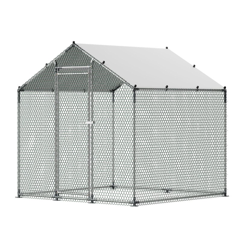 Sturdy Structure: With 1" thick galvanized steel pipes and precise welding, this chicken run boasts stability and wind resistance. The top cover facilitates effective drainage, preventing water accumulation. Reinforced with hexagonal protective mesh, it provides a safer space for the poultry.