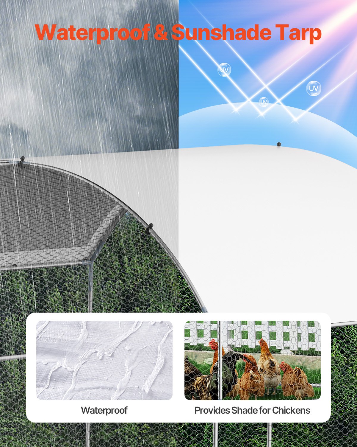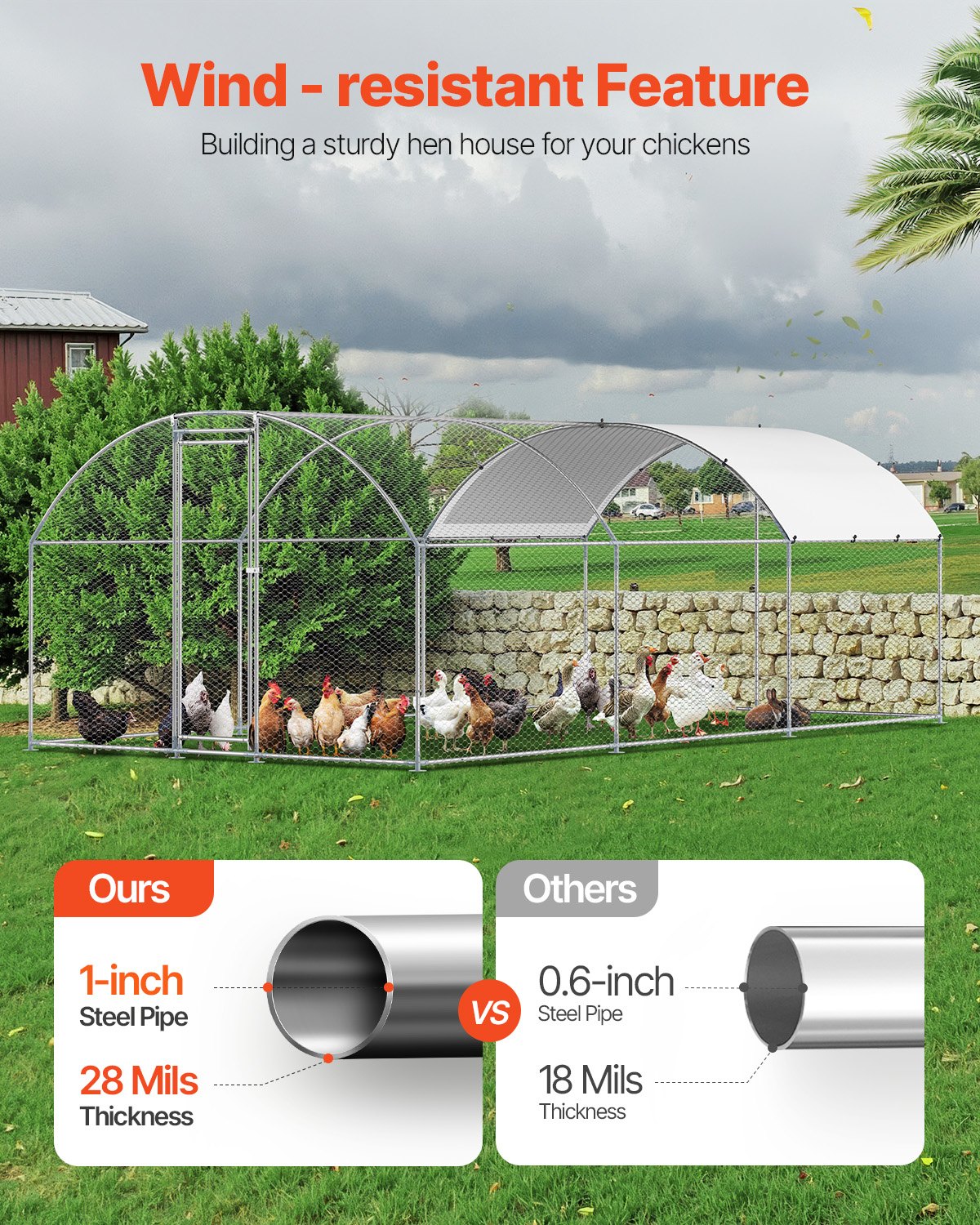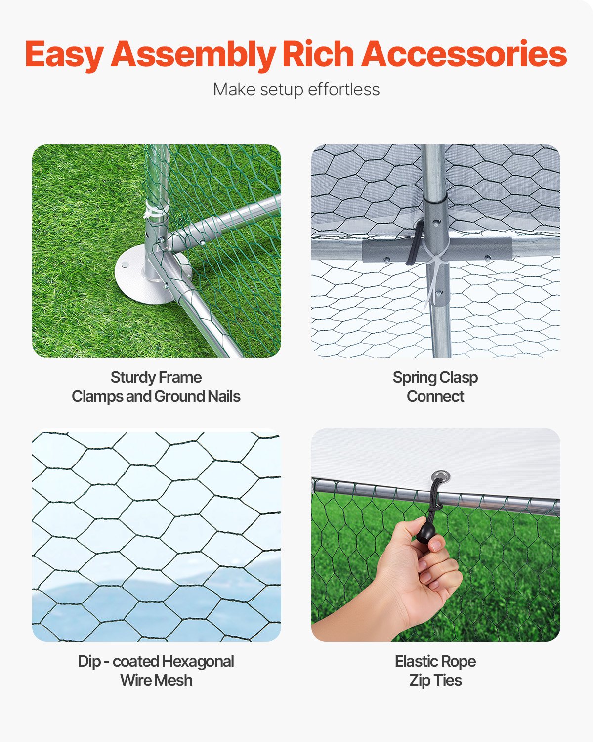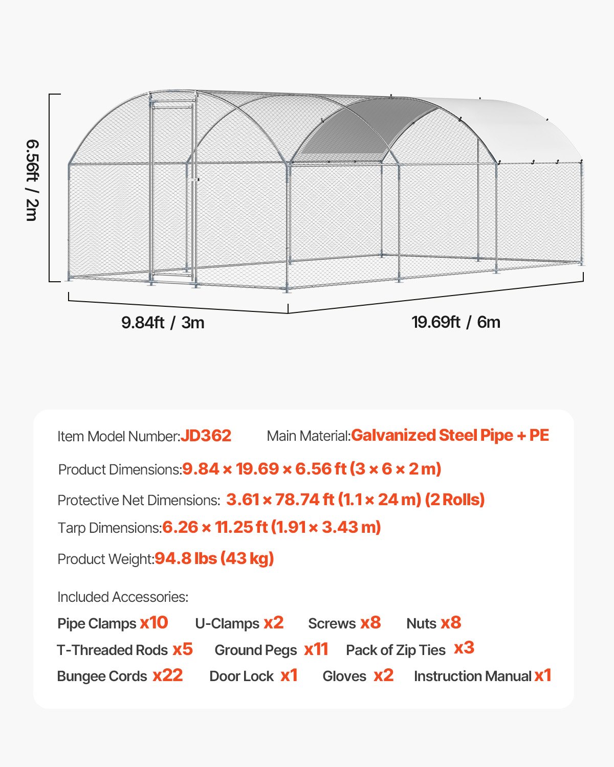 Metal Chicken Coop 9.8x19.6x6.5 Ft Walk-in Chicken Run With Cover Doom Roof
