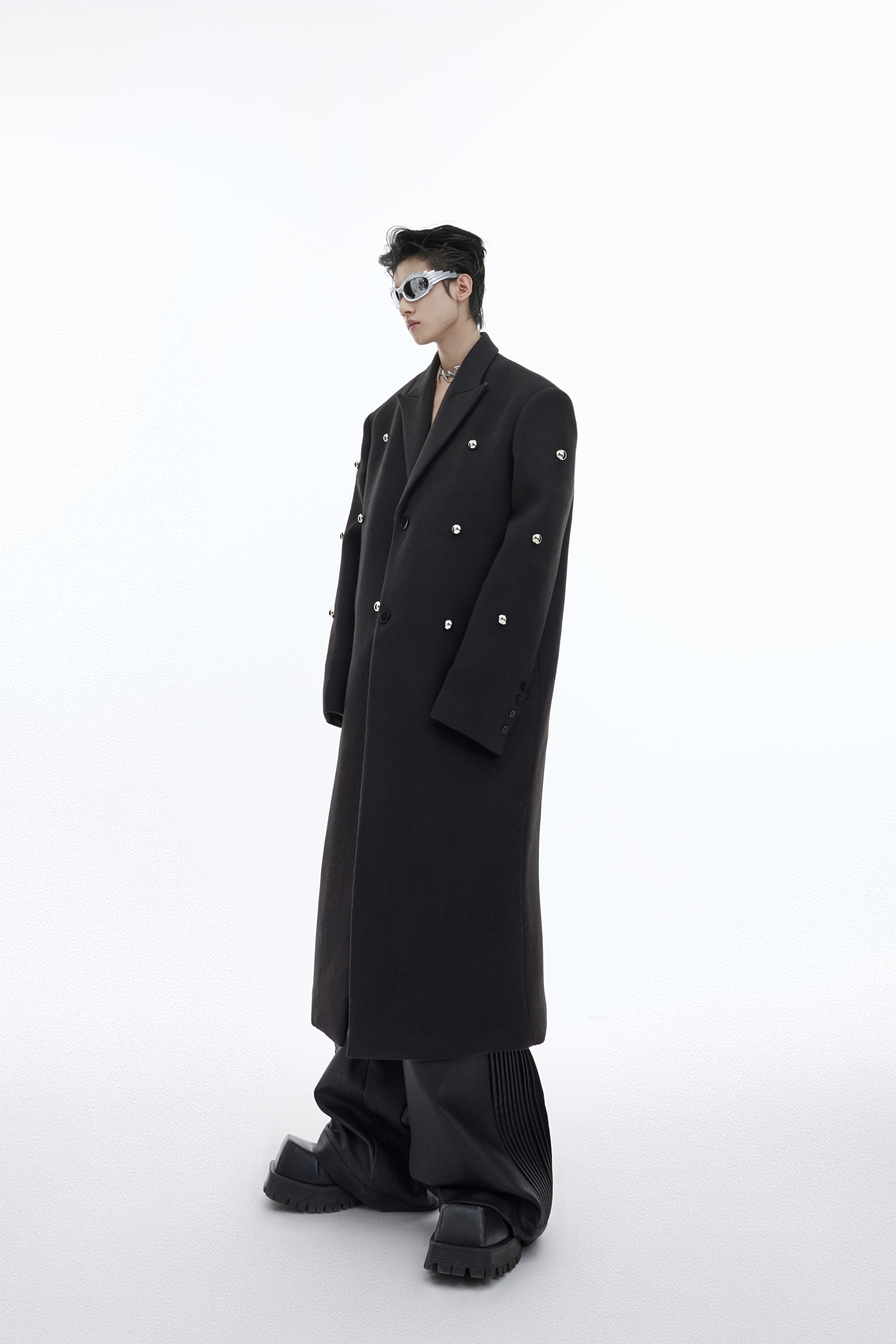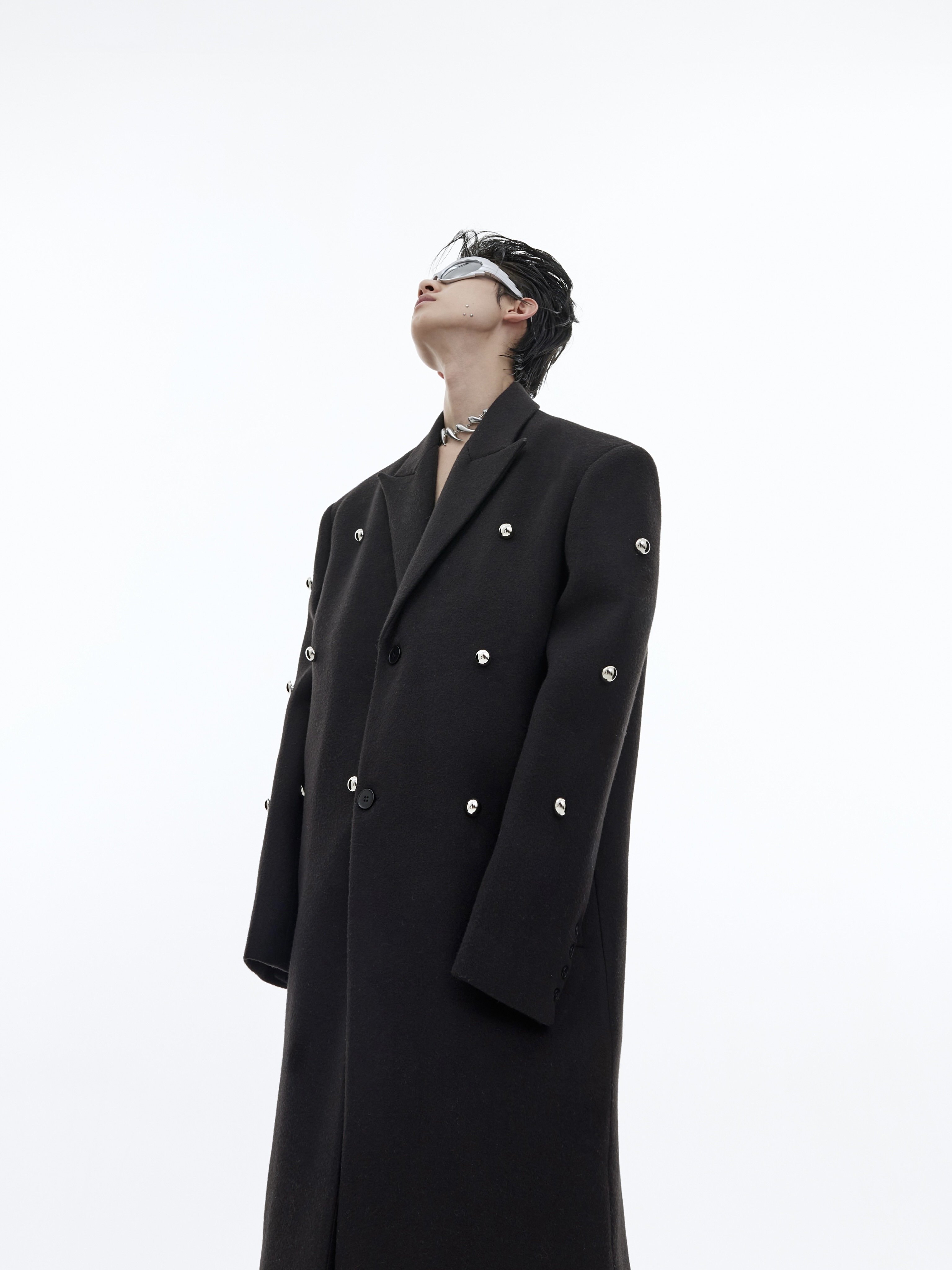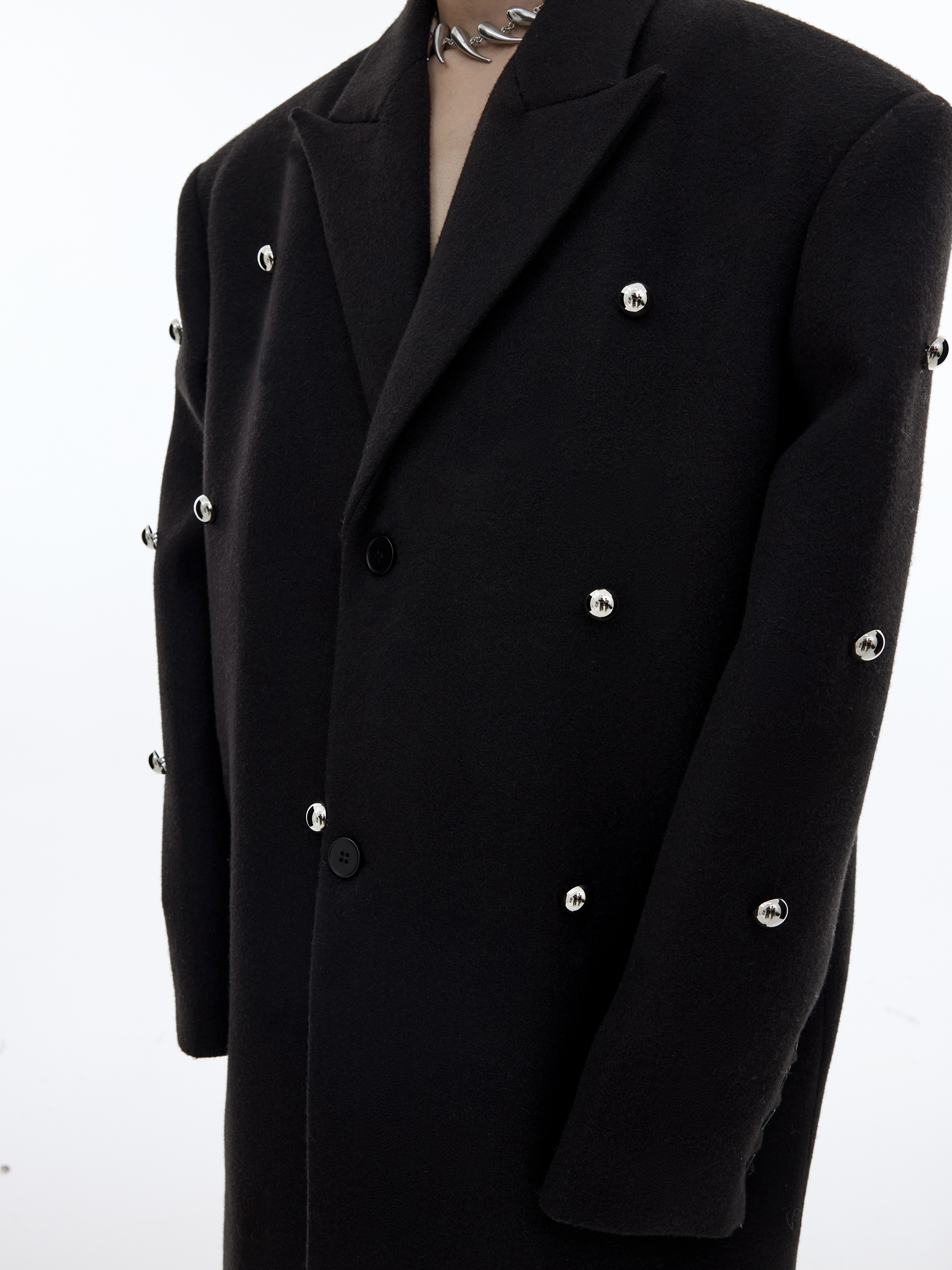 Metal Design Felt Shoulder Pad Fur Coat Jacket