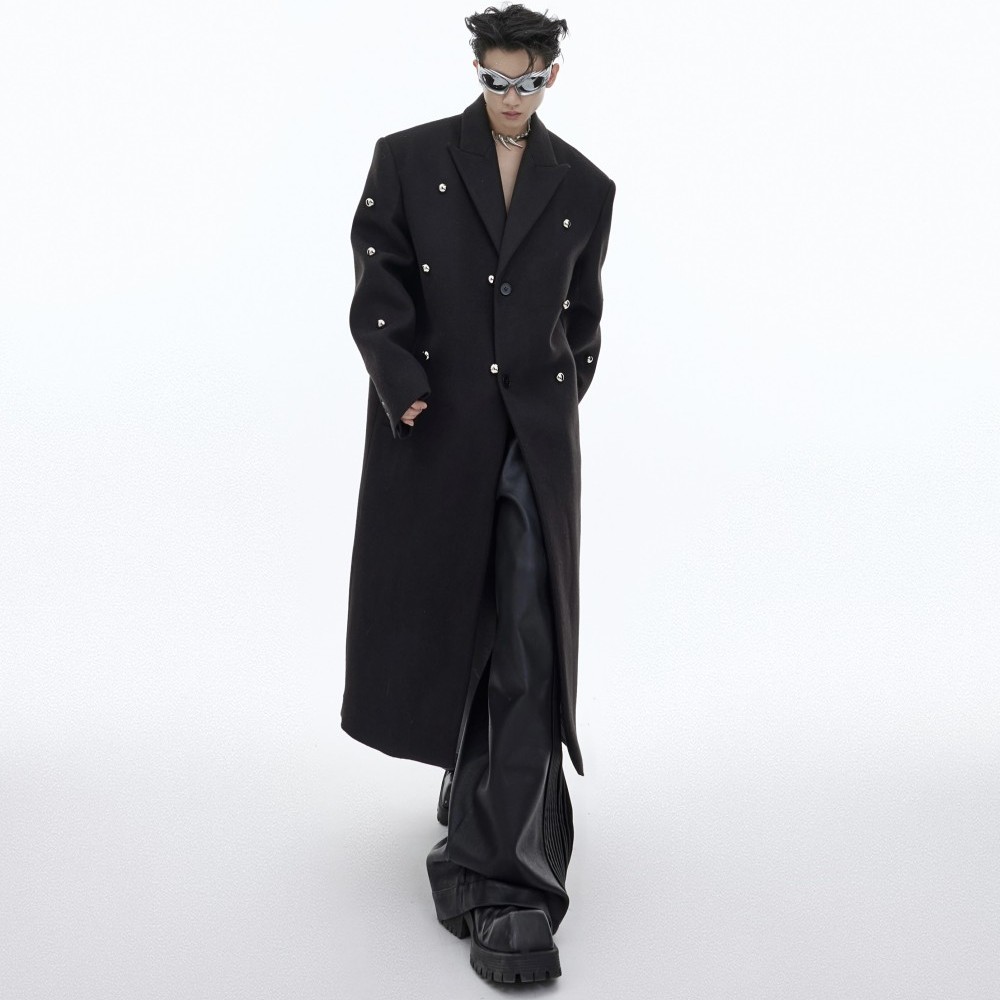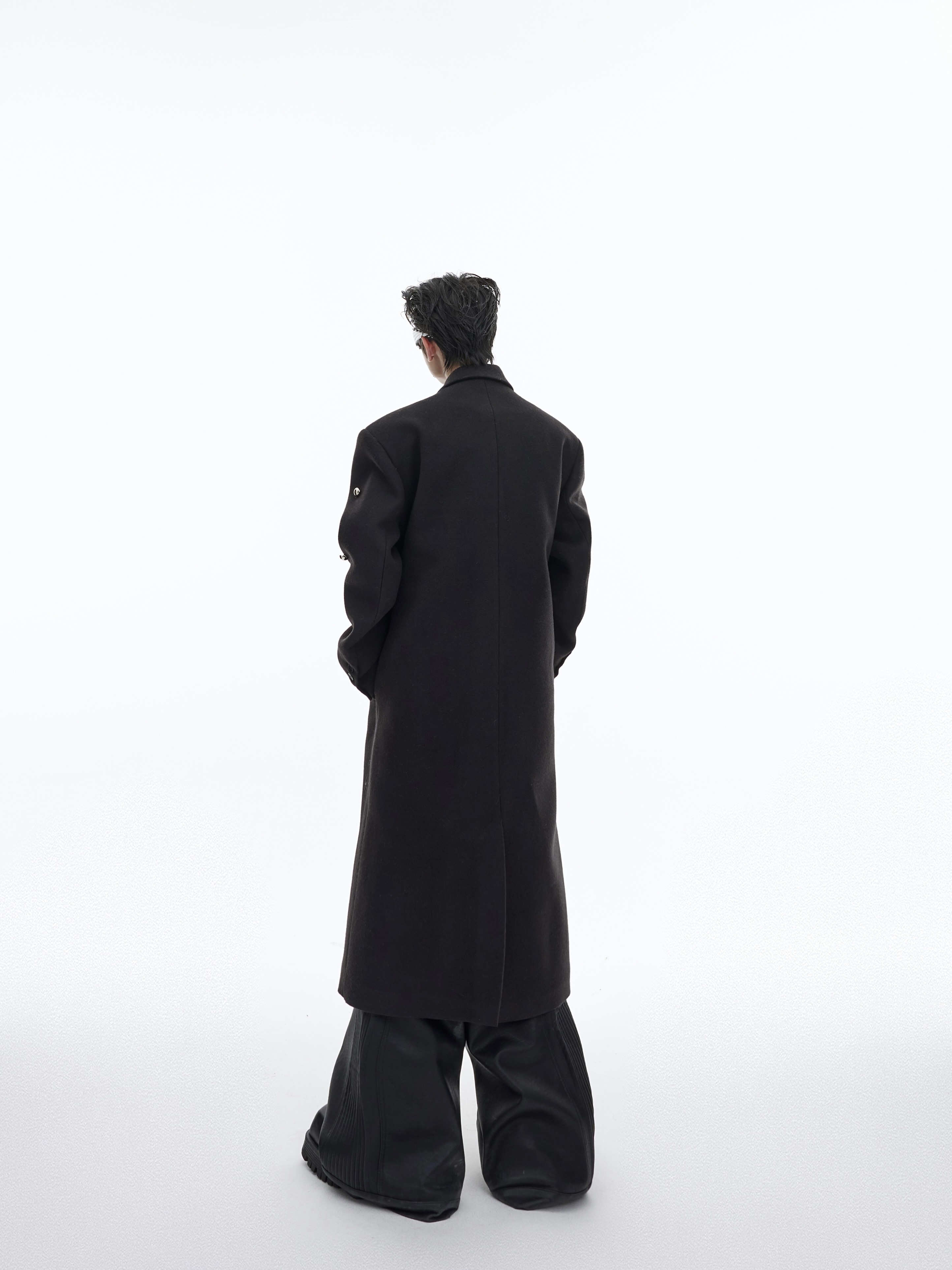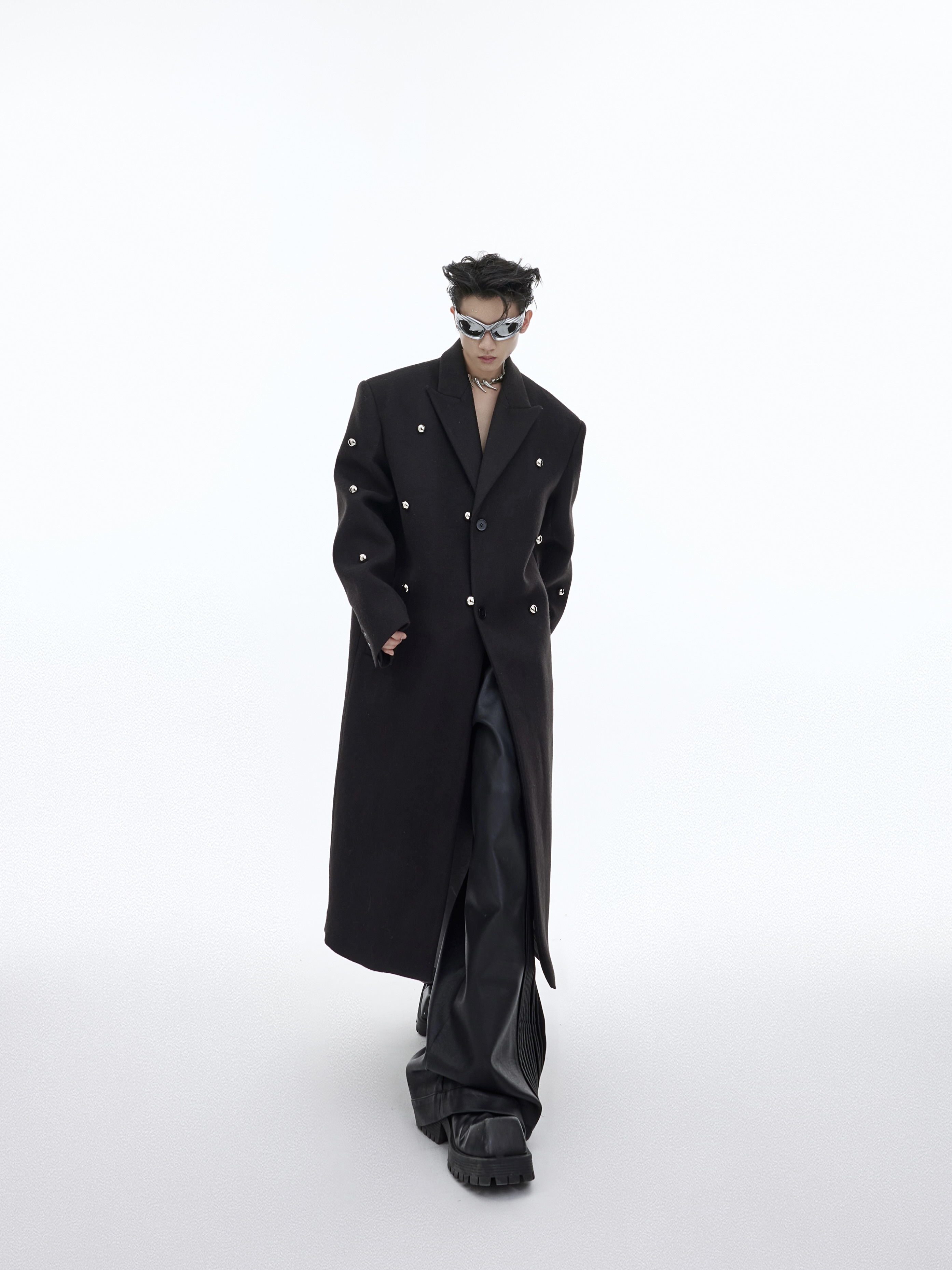 Metal Design Felt Shoulder Pad Fur Coat Jacket