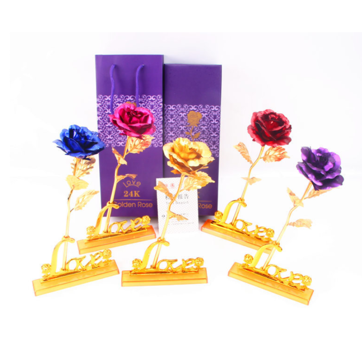 5 colors: Rose/blue/gold/purple/red