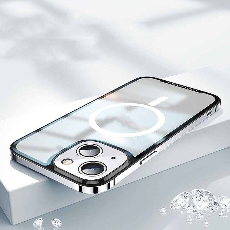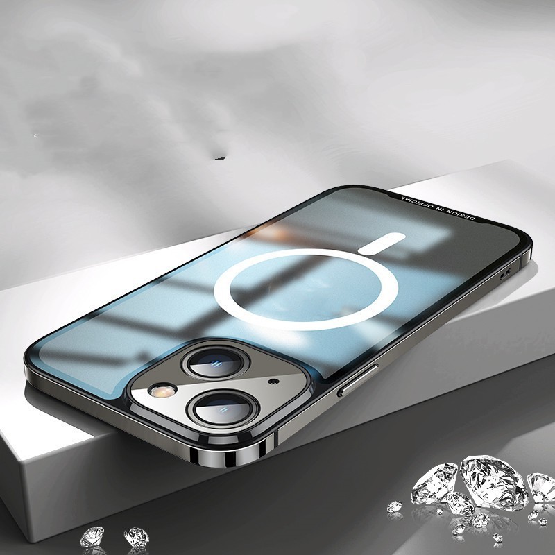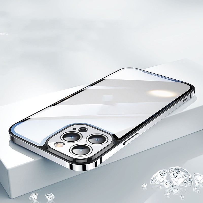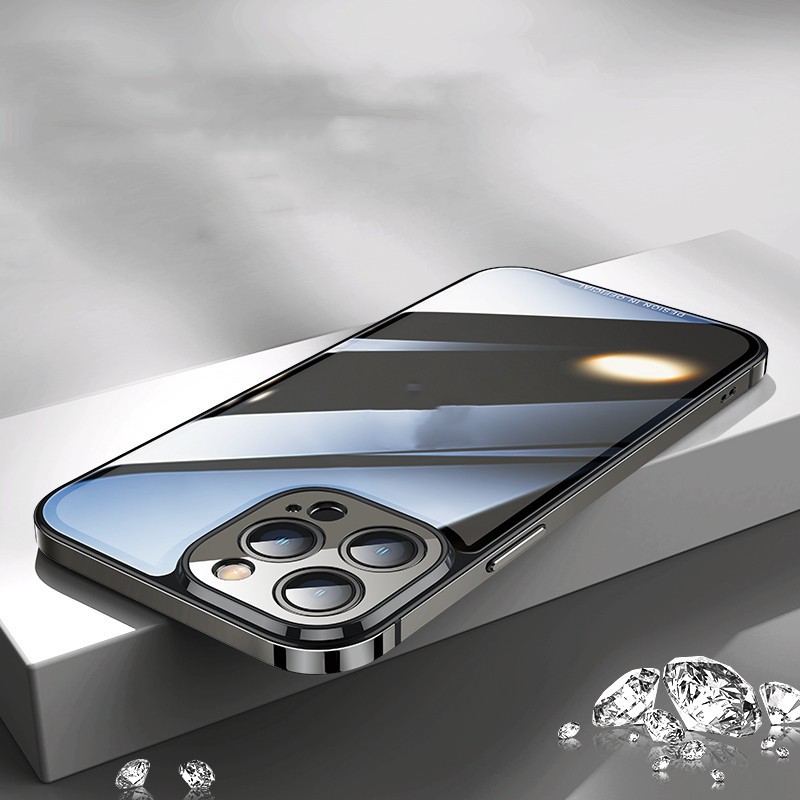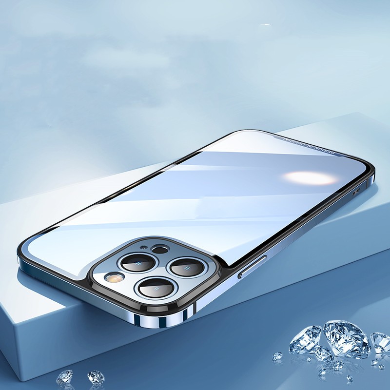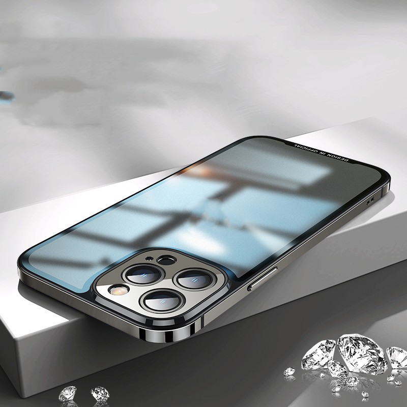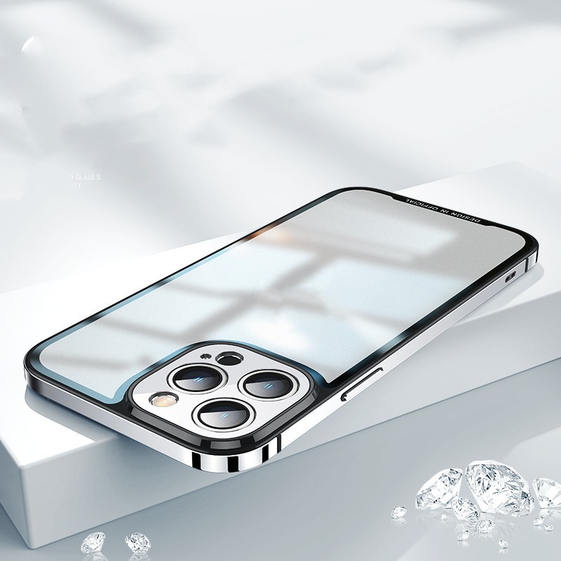 Colors: Far Peak Blue HD-Stainless Steel Edge Glass Shell, Silver HD-Stainless Steel Edge Glass Shell, Graphite HD-Stainless Steel Edge Glass Shell, Gold HD-Stainless Steel Edge Glass Shell, Far Peak Blue Frosted-Stainless Steel Edge Glass Shell, Silver Frosted-Stainless Steel Edge Glass Shell, Graphite Frosted-Stainless Steel Edge Glass Shell Yuanfeng blue frosted and magnetically attracted stainless steel edge glass shell, silver frosted and magnetically attracted stainless steel edge glass shell, graphite frosted and magnetically attracted stainless steel edge glass shell and gold frosted and magnetically attracted stainless steel edge glass shell.