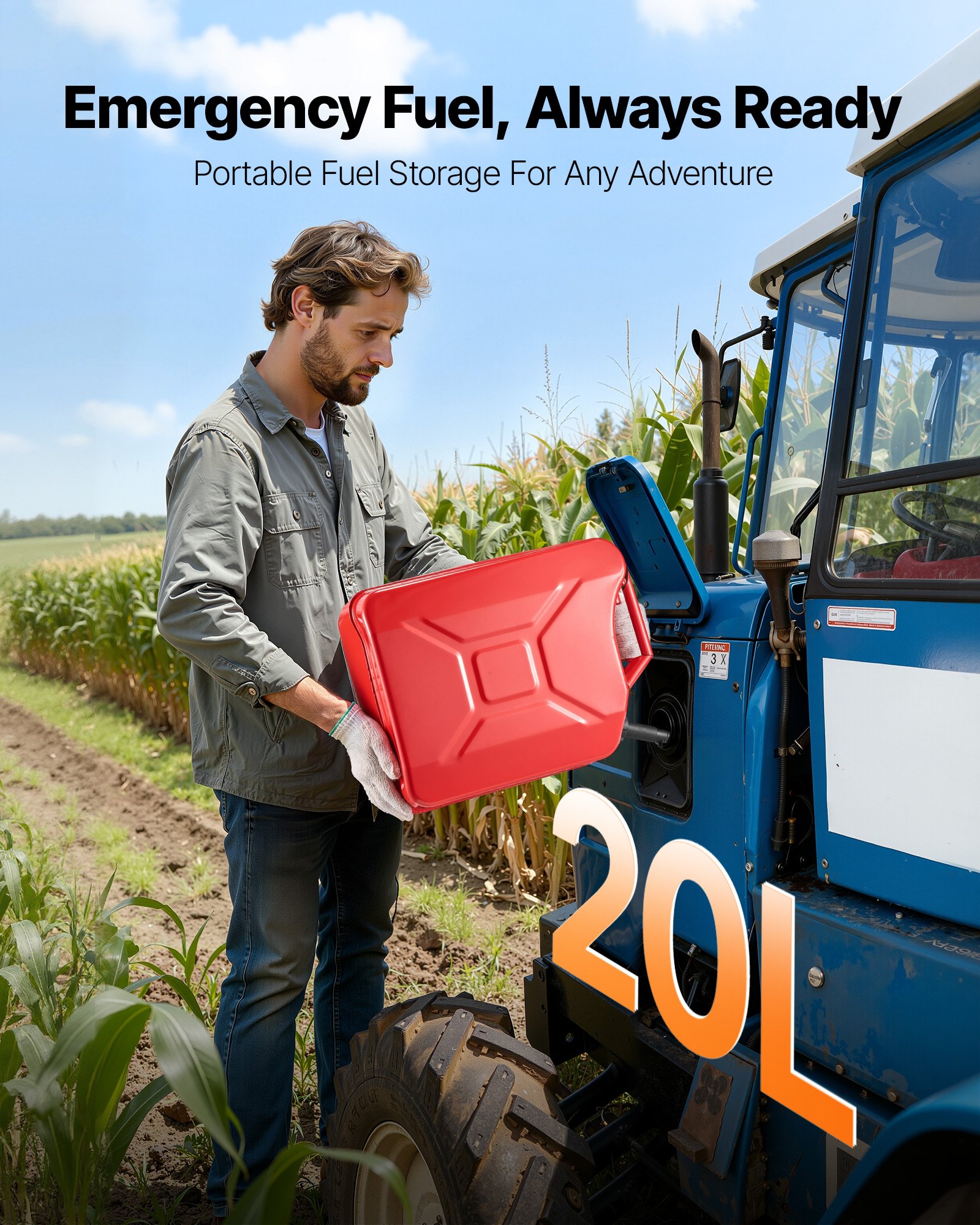 Compact Size: Need extra fuel on the go? This 5.3Gal/20L metal gas can (14.2 x 7.1 x 20.1 inches) slips into your trunk with ease. Lightweight yet practical, it's ideal for road trips, camping, or outdoor work