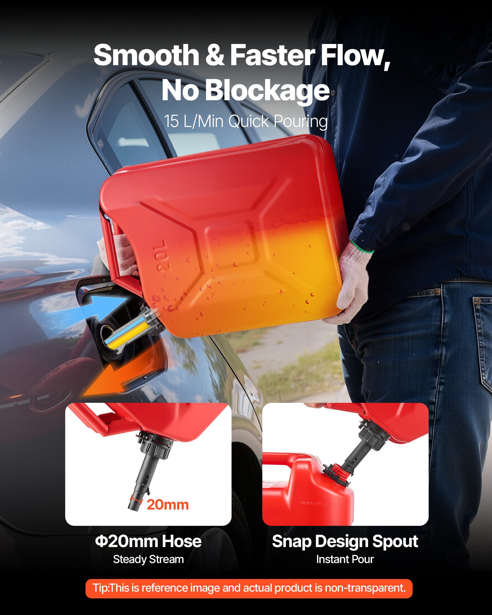 Smooth 6 L/min Fast Flow: Hate slow, messy refills? This metal jerry can delivers up to 6 L/min with a wide 20 mm hose and snap spout, giving you smooth, splash-free pours without the annoying "glug"