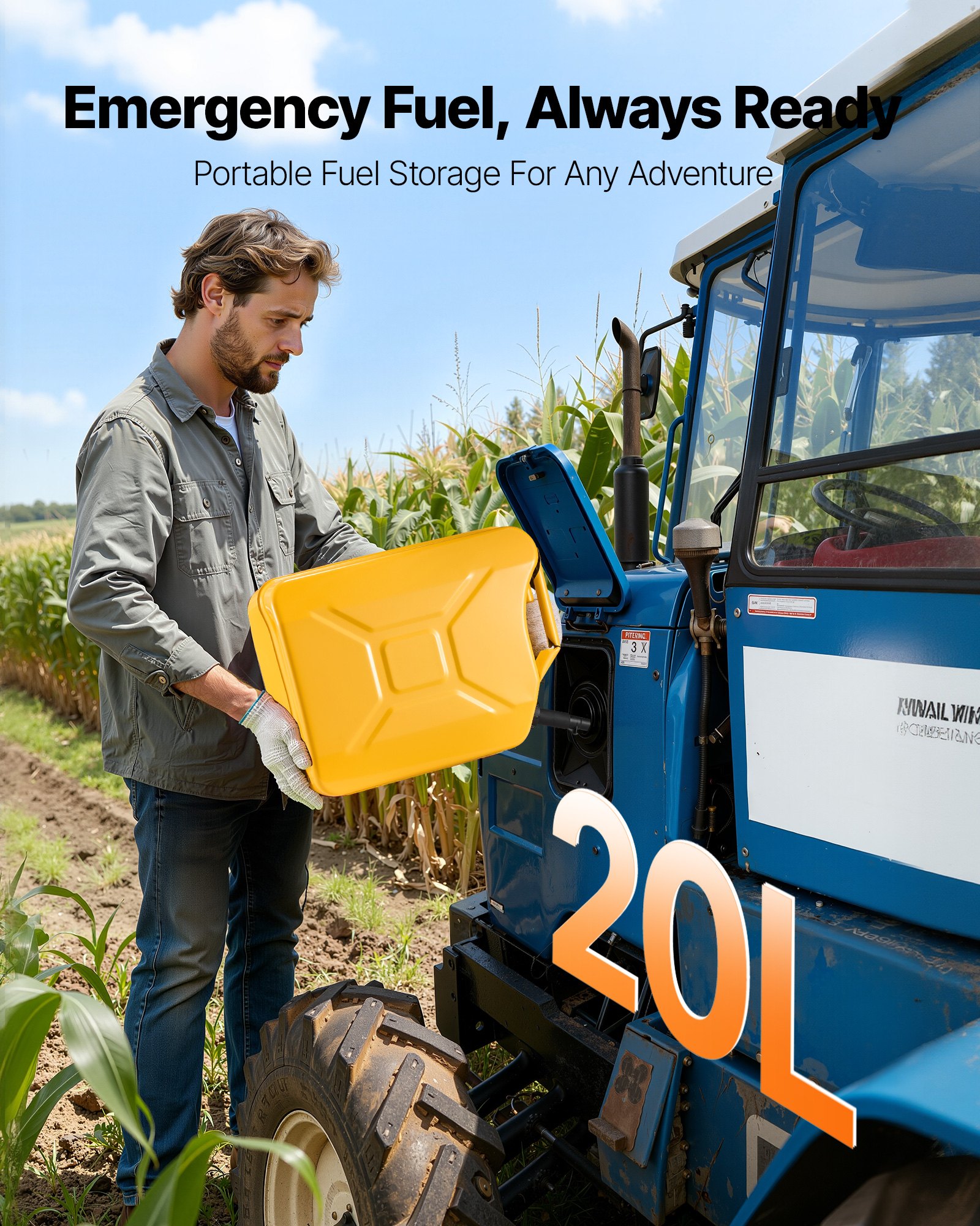 Compact Size: Need extra fuel on the go? This 5.3Gal/20L metal gas can (14.2 x 7.1 x 20.1 inches) slips into your trunk with ease. Lightweight yet practical, it's ideal for road trips, camping, or outdoor work