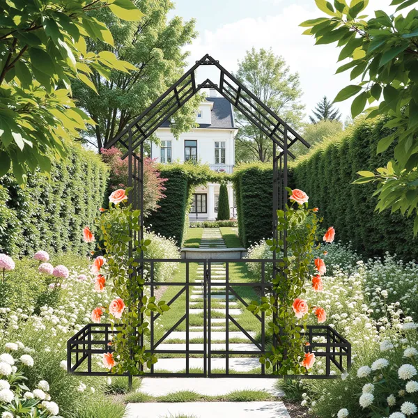 Metal Garden Arch With Gate With Planter W80.71*H97.24 Climbing Plants Support Rose Arch Outdoor Black