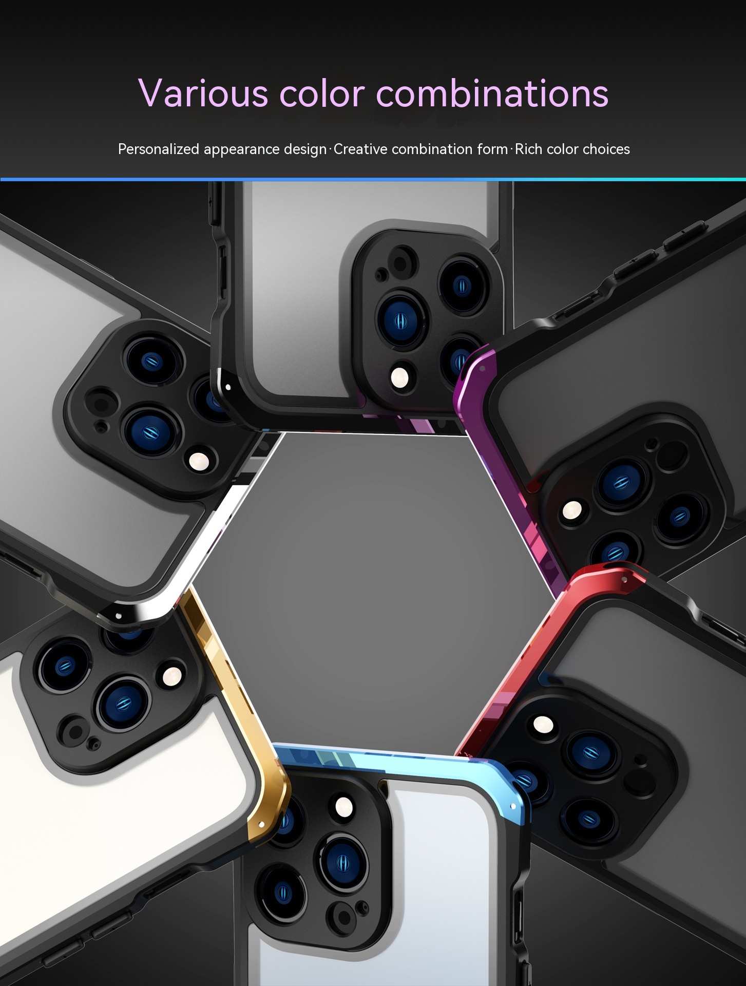 Color: Black Gold, black silver, black blue, black red, black purple, all black