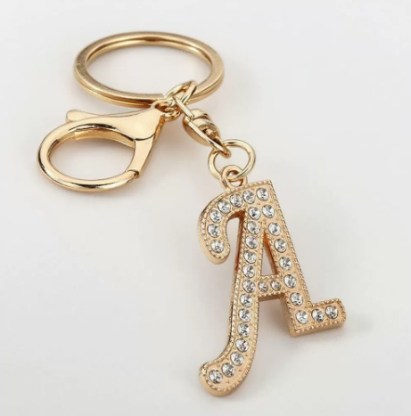 Metal Inlaid Diamond 26 English Letter Key Ring