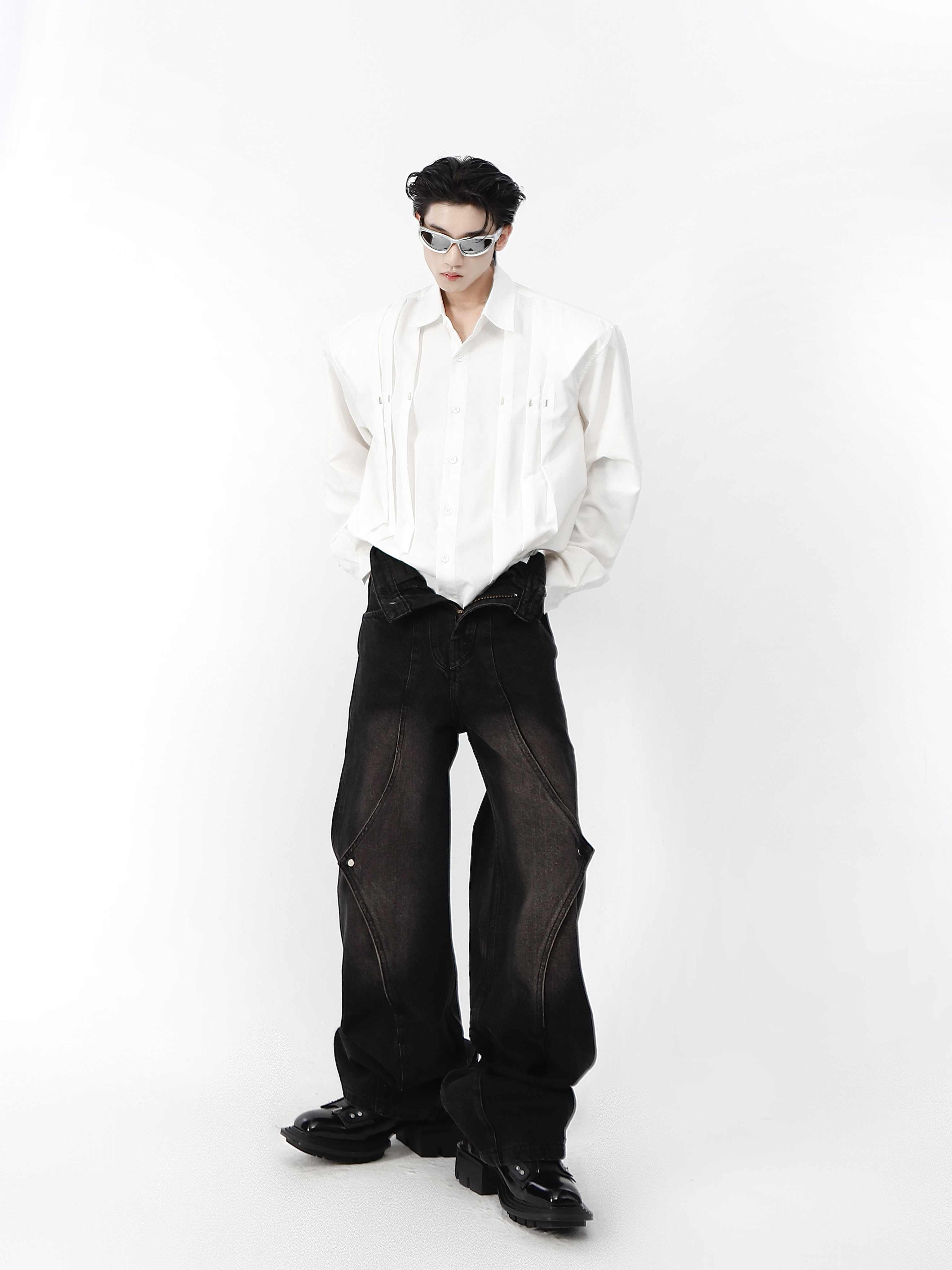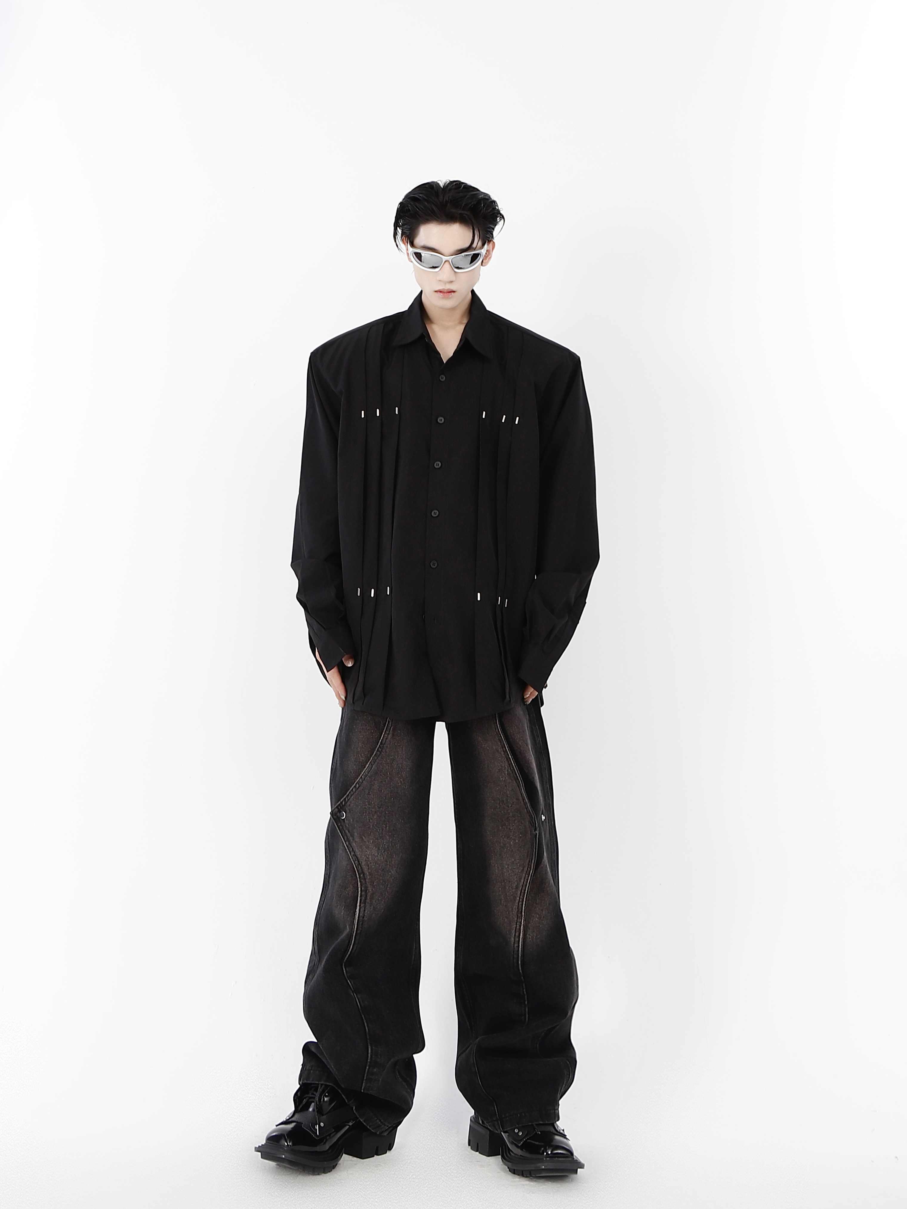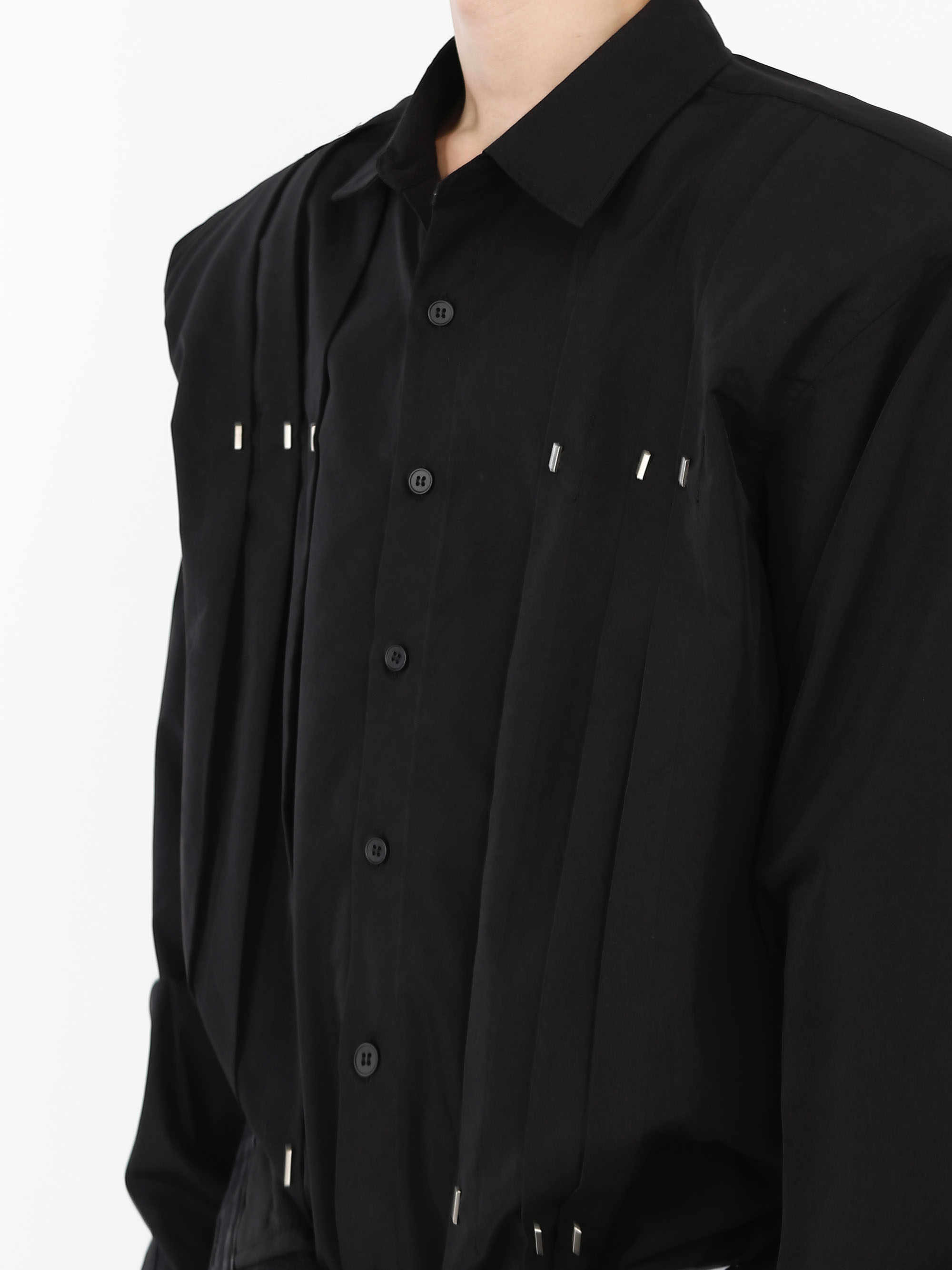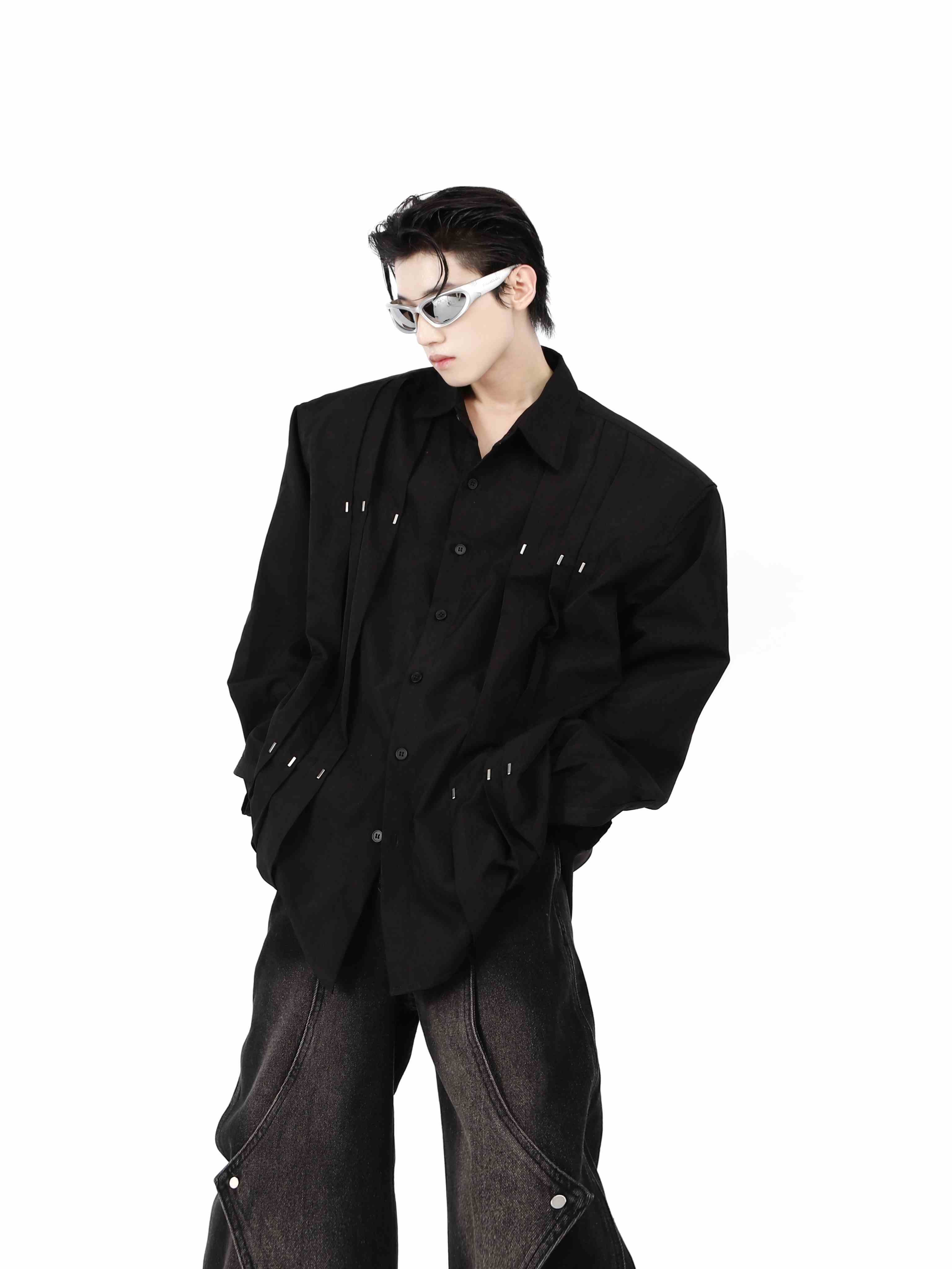 Metal Rivet Stitching Padded Shoulder Shirt