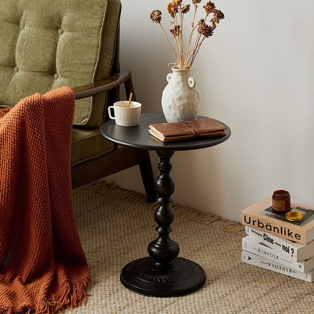 Metal Small Round Side End Table, Vintage Matte Coffee Drink Cocktail Table,