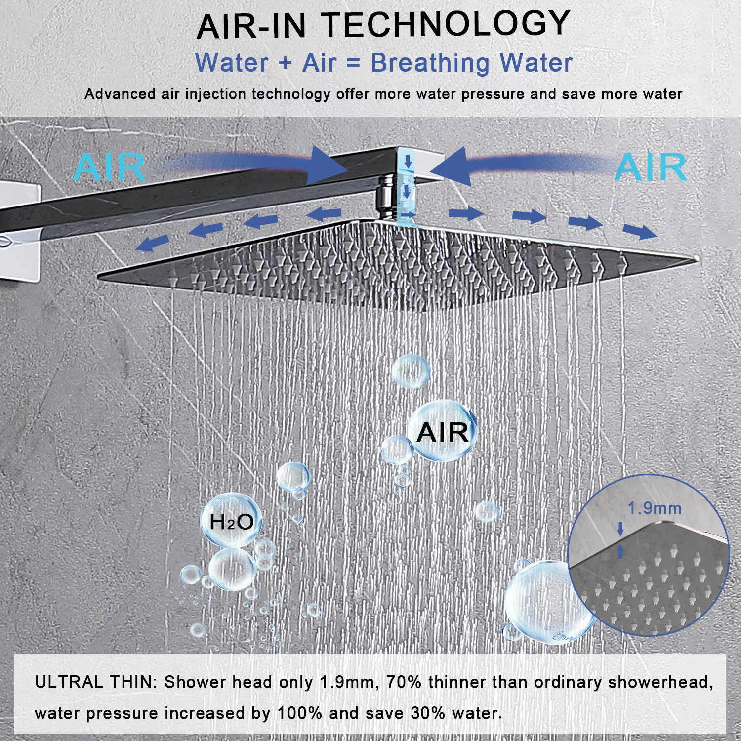 4. Air energy technology offer consistent powerful rain shower even under low water pressure.: