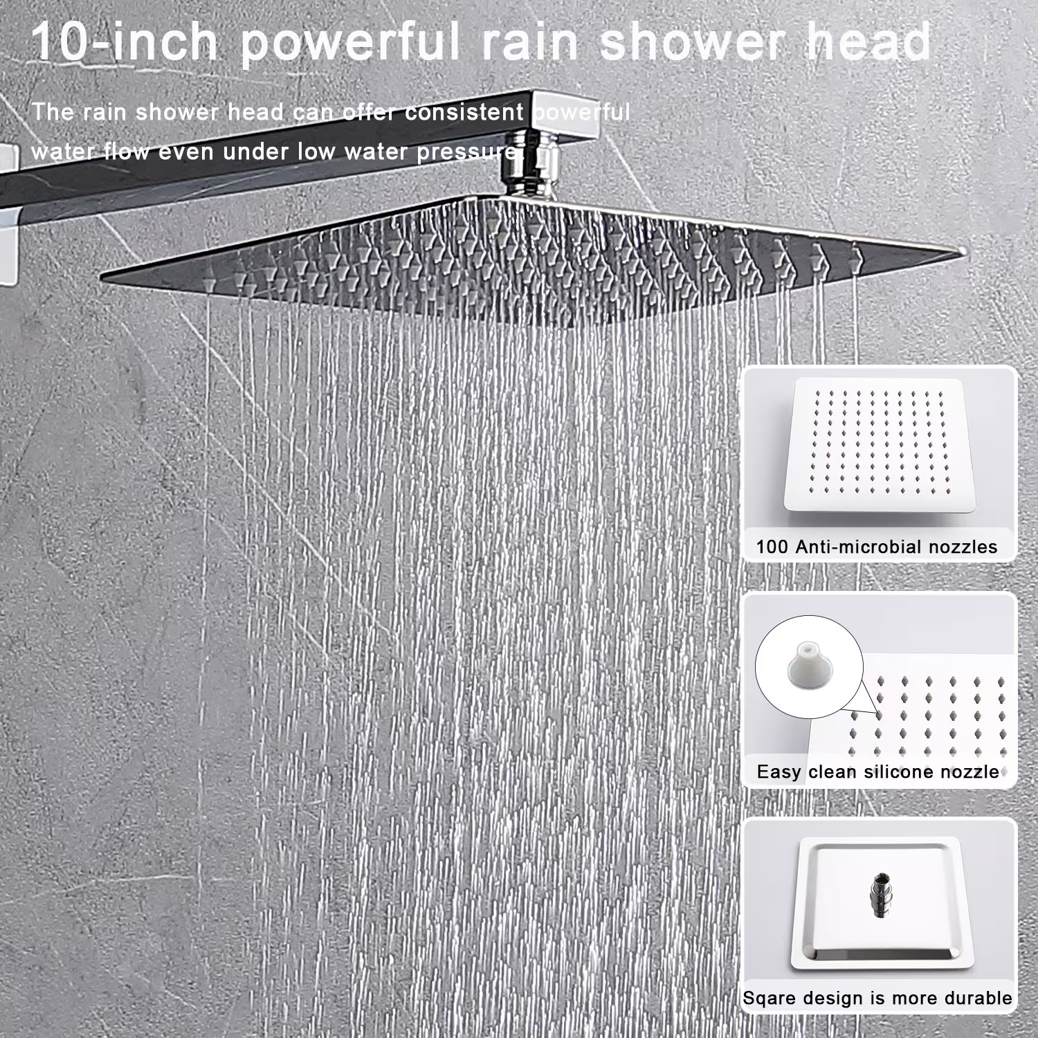 11.Included Components: Shower arm, rain shower head, handheld shower head, shower valve faucet, shower bracket holder, shower hose