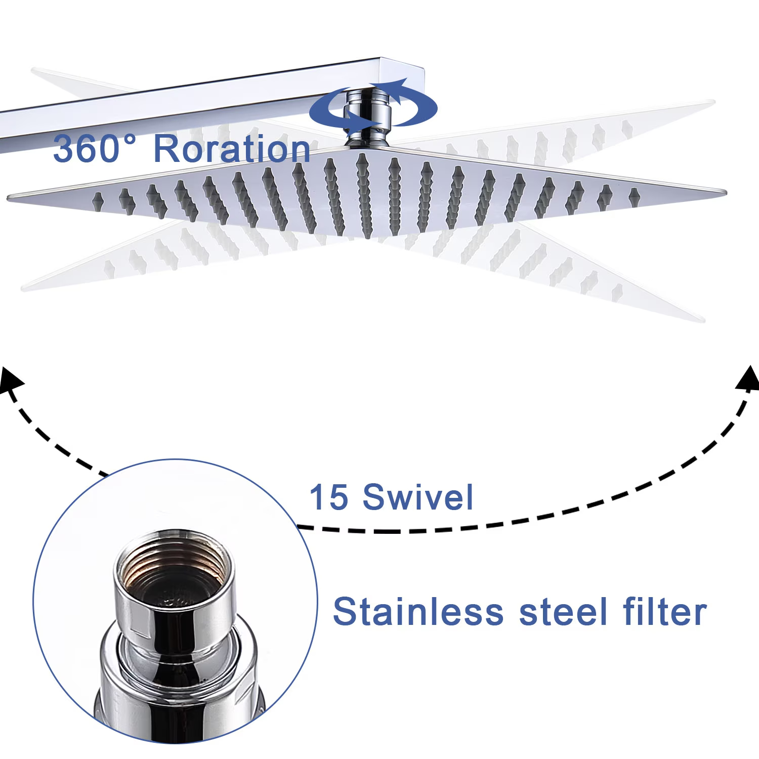 Product name: Shower System Shower Faucet Combo Set Wall Mounted with 12" Rainfall Shower Head and handheld shower faucet, Chrome Finish with Brass Valve Rough-In