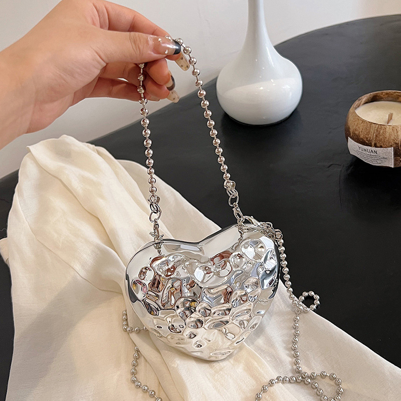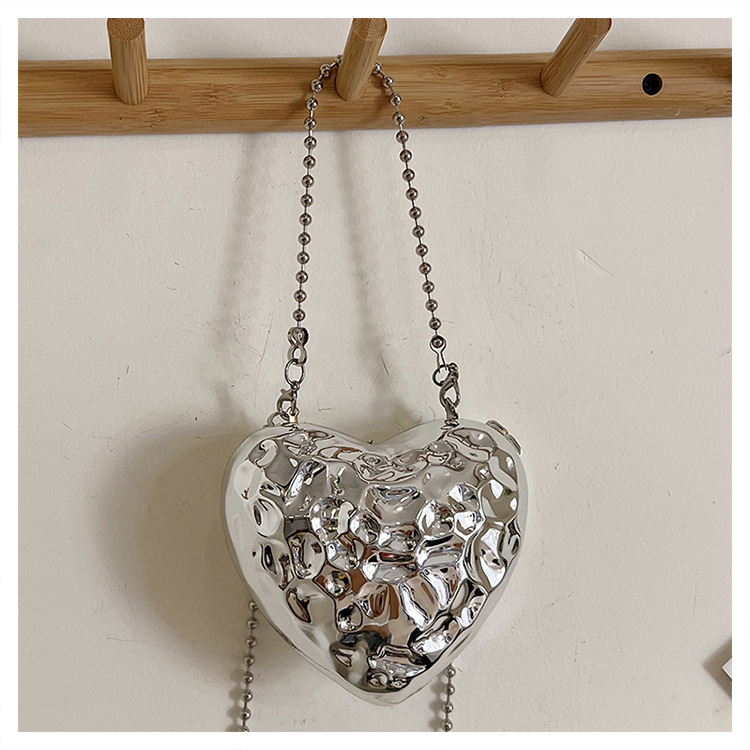 Metal Silver Mini Love Crossbody Bag