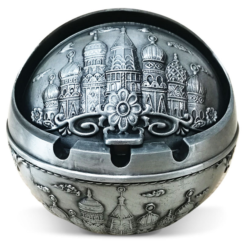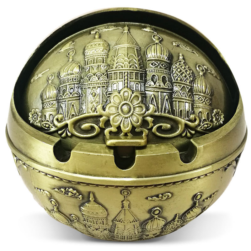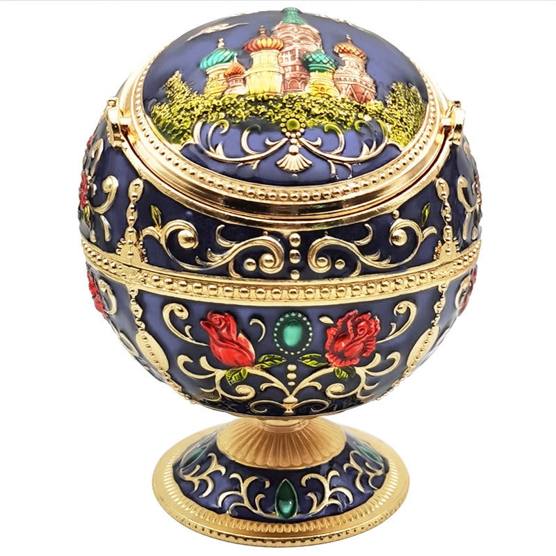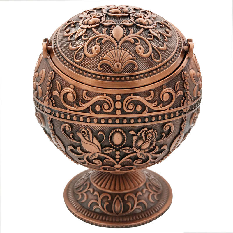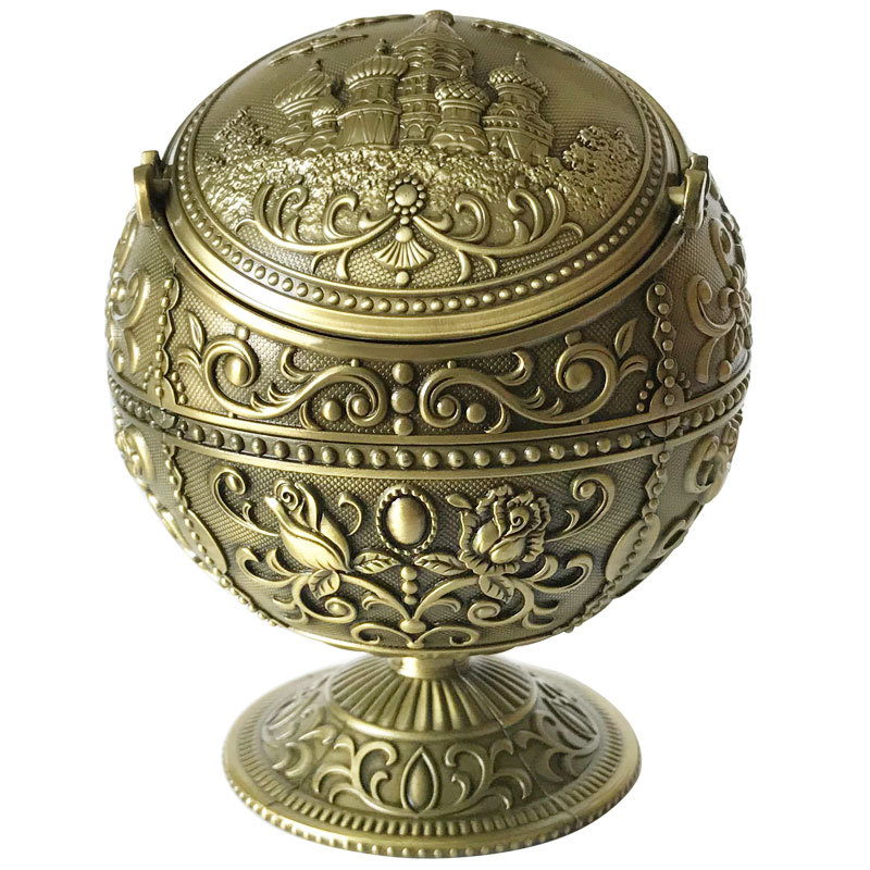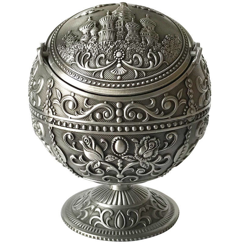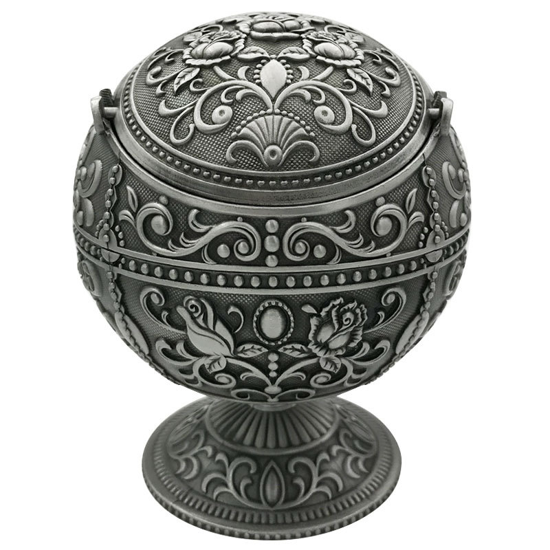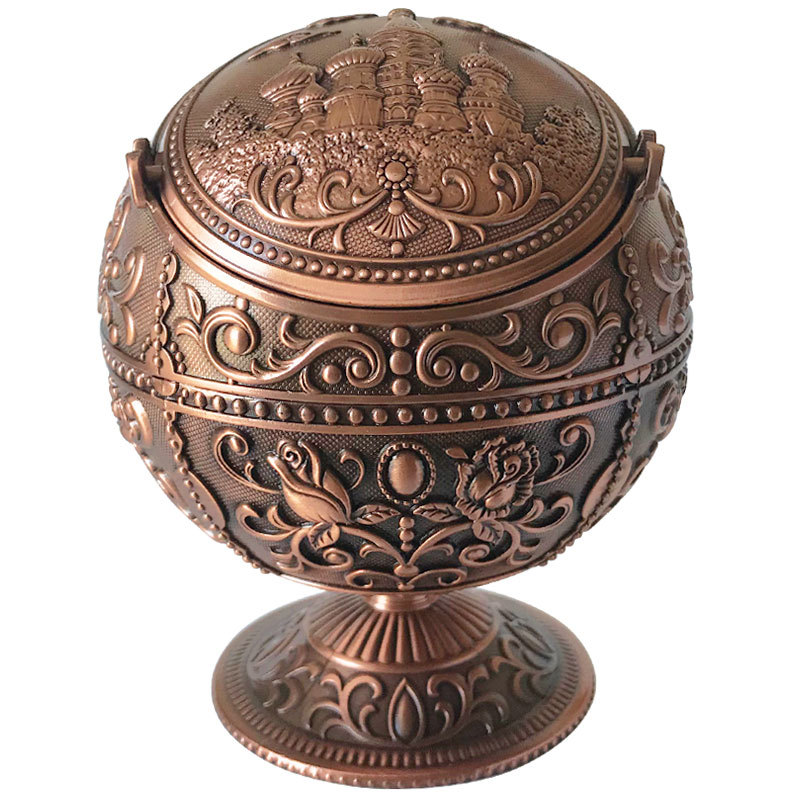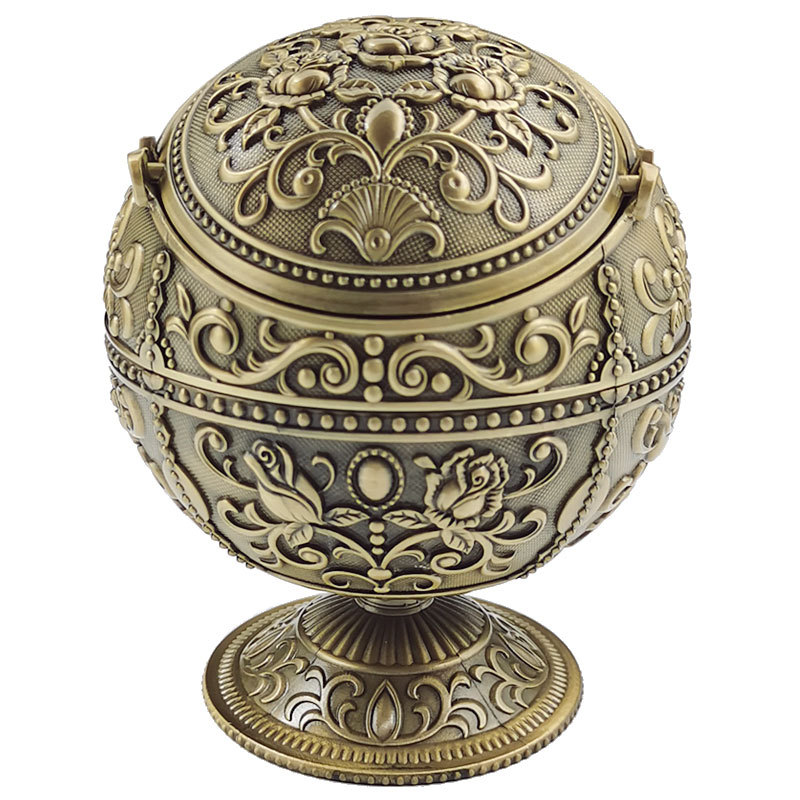 Metal Spherical Globe Decorated Ashtray With Lid