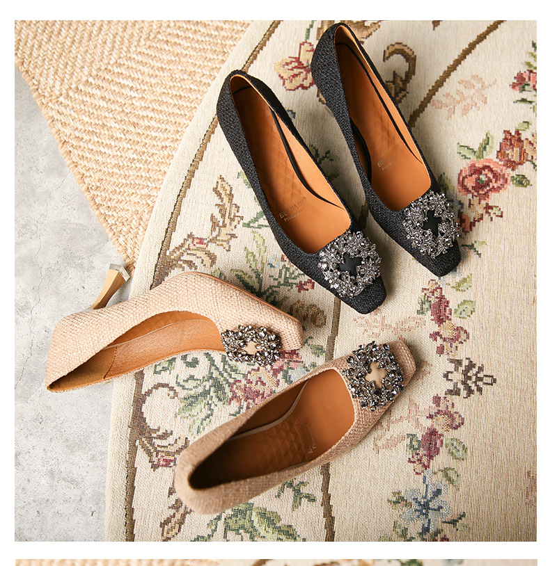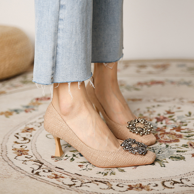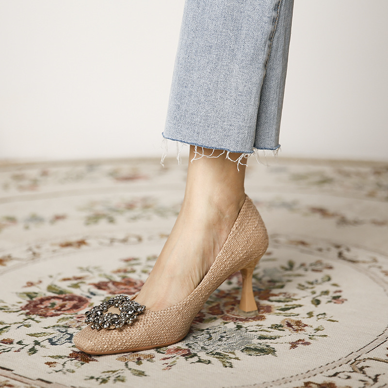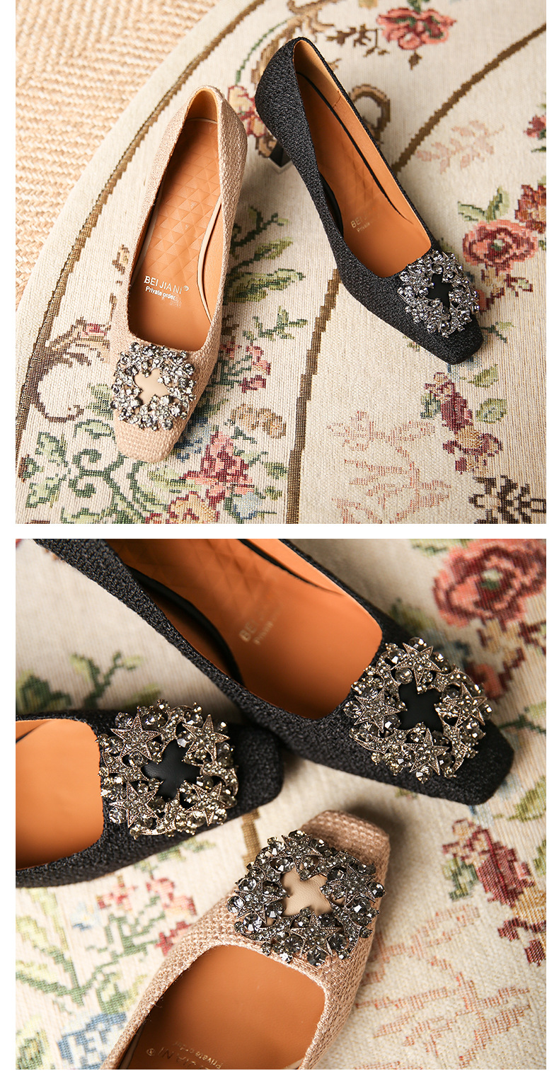 Metal Square Button Square Head High Heels