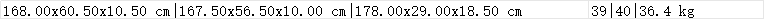 168.00x60.50x10.50 cm|167.50x56.50x10.00 cm|178.00x29.00x18.50 cm
