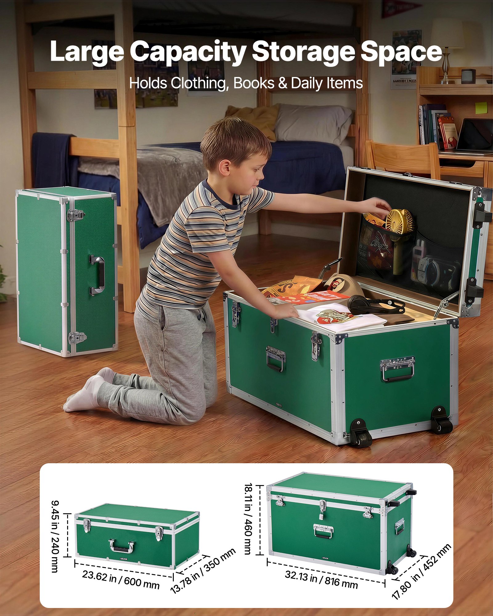 Large-Capacity Storage: Large storage trunk size 32.13 x 17.80 x 18.11 in / 816 x 452 x 460 mm; small storage trunk size 23.62 x 13.78 x 9.45 in / 600 x 350 x 240 mm; roomy space for clothing, books, school supplies, and daily items