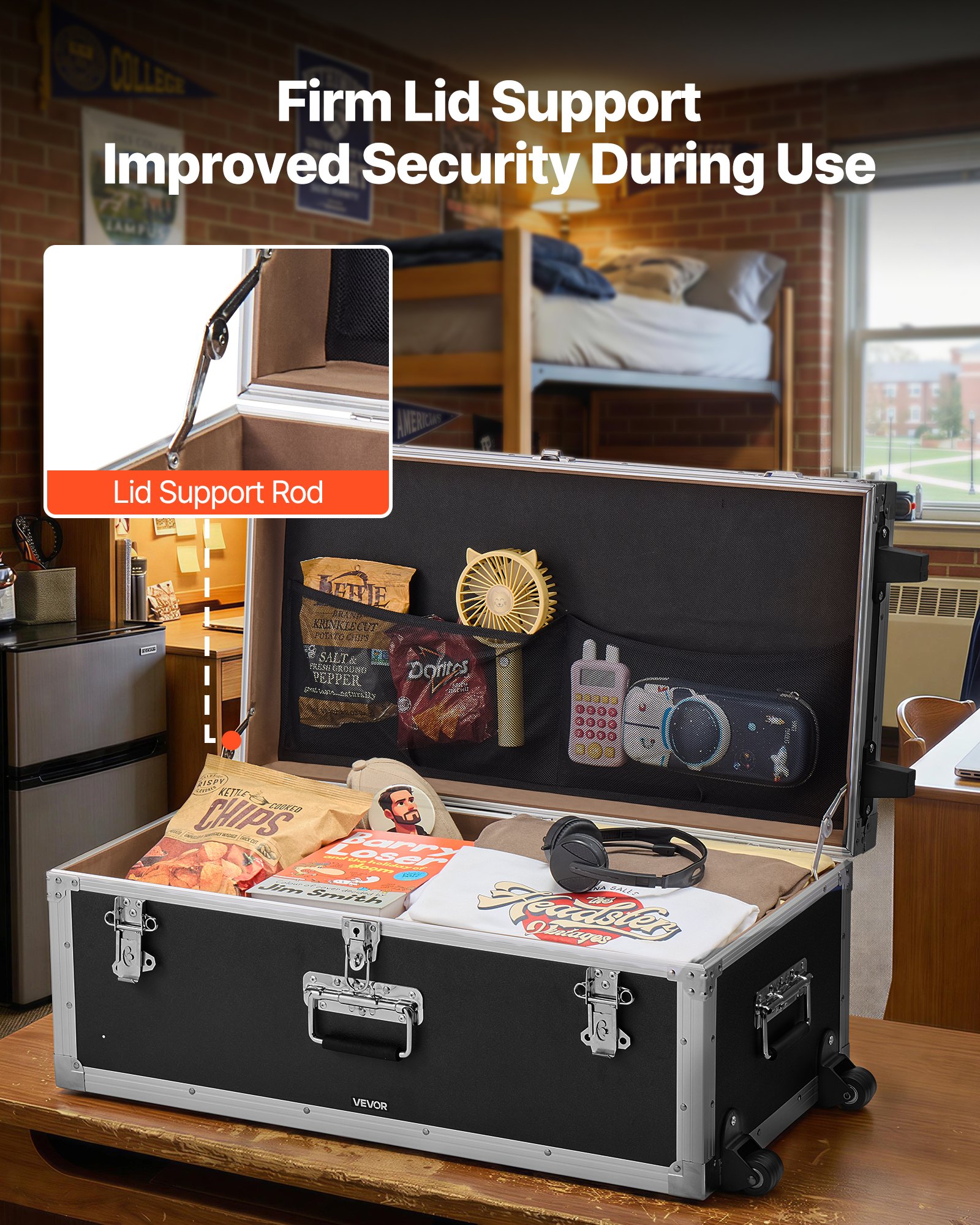 Secure Storage for Valuables: The large trunk includes a combination padlock; stores valuables & personal items for shared dorm rooms; small trunk includes a standard latch lock for everyday items