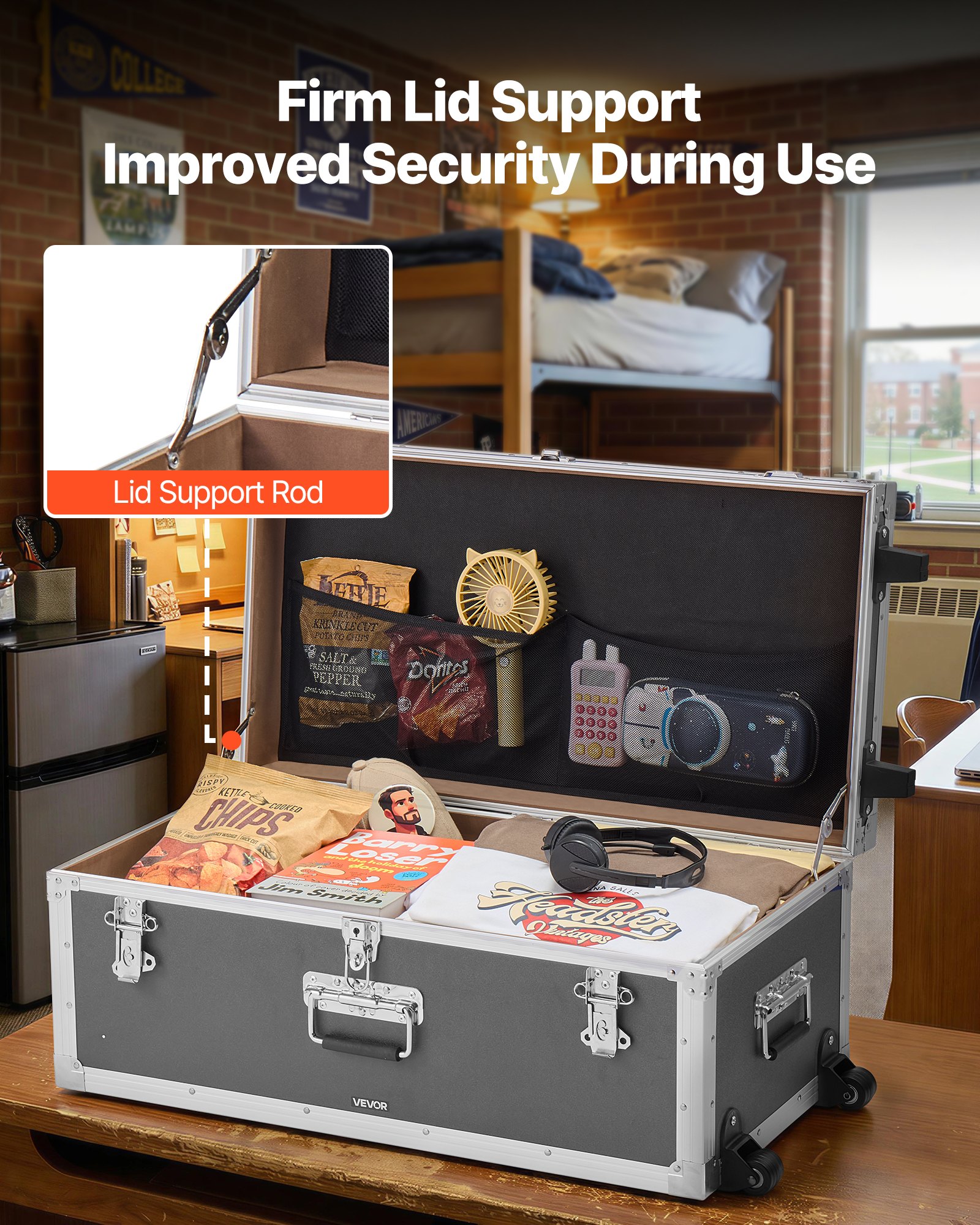 Secure Storage for Valuables: The large trunk includes a combination padlock; stores valuables & personal items for shared dorm rooms; small trunk includes a standard latch lock for everyday items