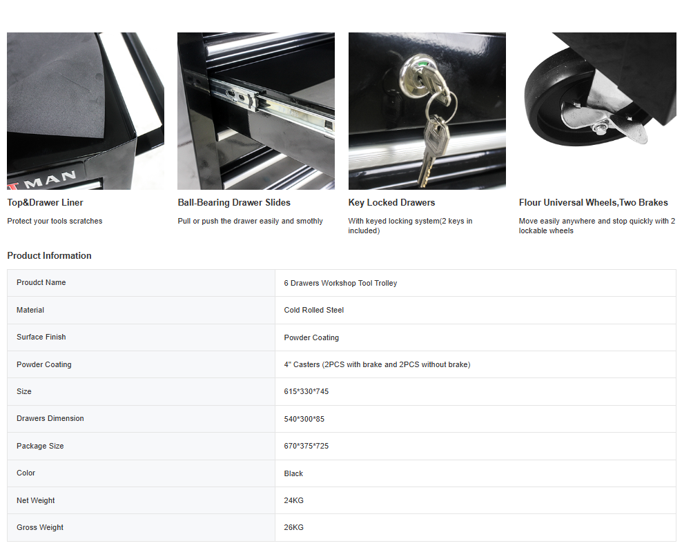 Product Name:6 DRAWERS MULTIFUNCTIONAL TOOL CART WITH WHEELS-BLACK