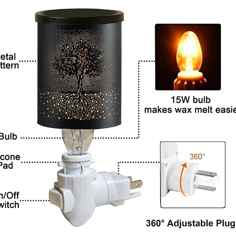 EASY OPERATION AND NIGHT LIGHT FUNCTION: Metal Wall-Plug Wax Melt Warmer is easy to operate. You can stick it into the wall, and turn on the switch, then it will automatically accent the room with the aroma you choose. Plus, a wax burner can be used as a night light to light the room and create a peaceful atmosphere.