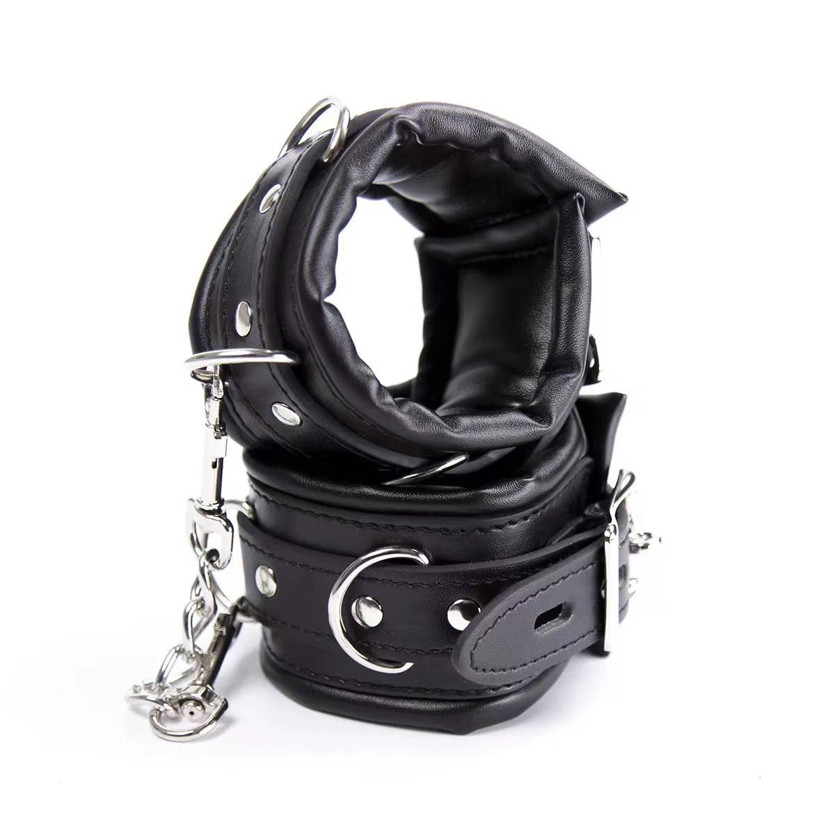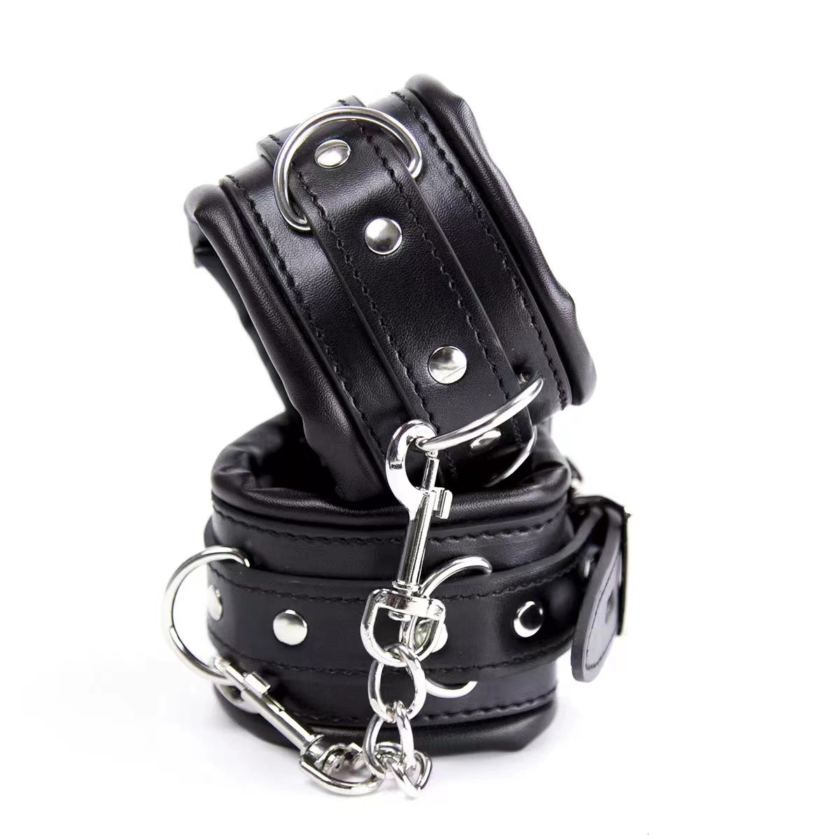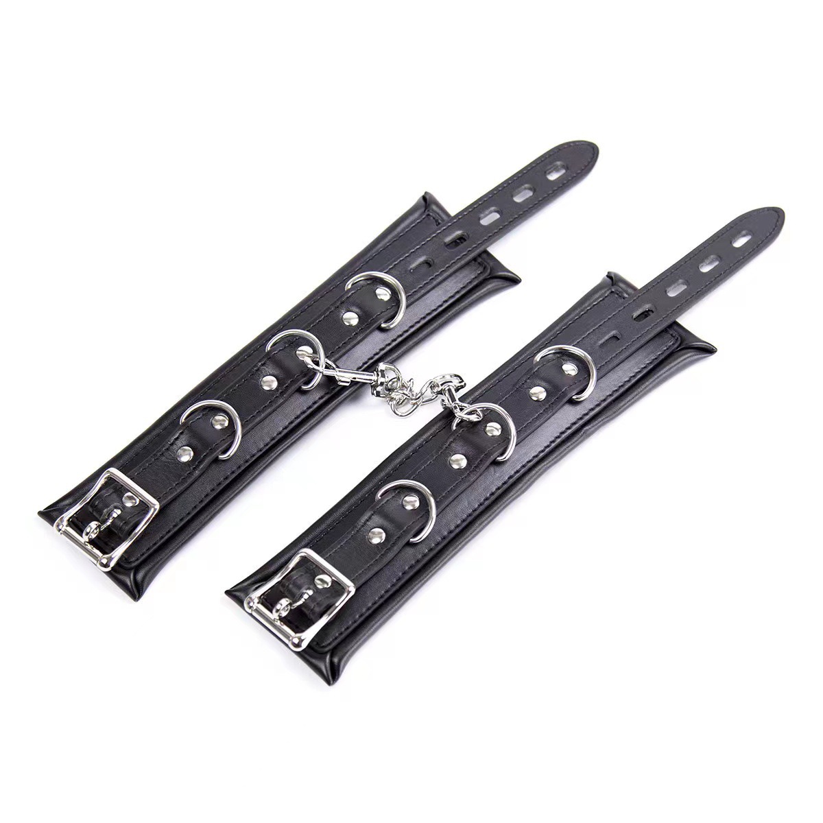 Specifications: handcuffs black and red belt chain, footcuff black and red belt chain, handcuffs black ribbon chain, footcuff black ribbon chain