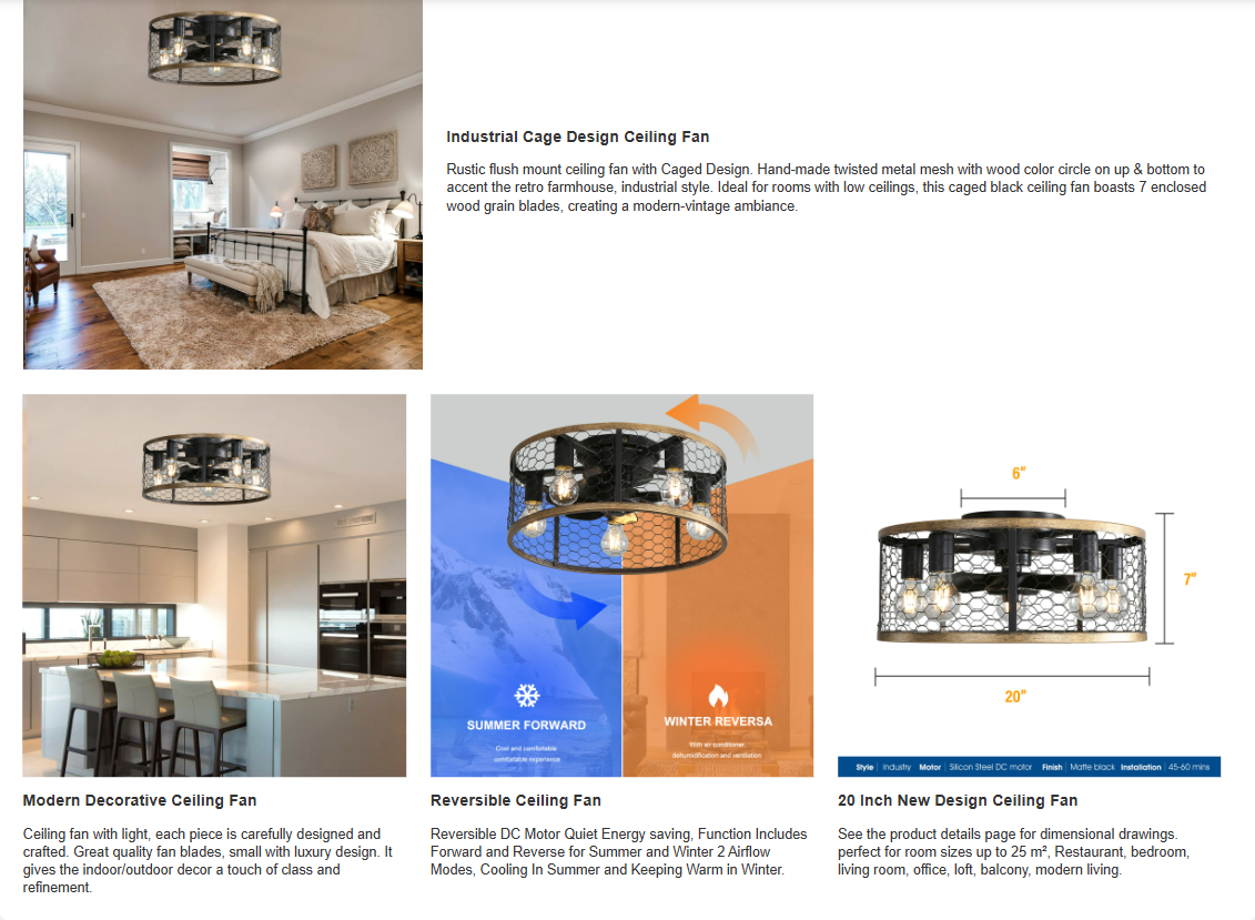 Product Name:20 Inch Industrial Caged Ceiling Fan, With 7-ABS Blades Remote Control Reversible DC Motor, Small Flush Mount Ceiling Fan For Farmhouse